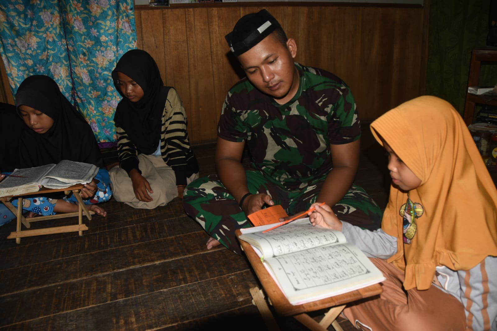 Kegiatan mengajar mengaji ini merupakan salah satu wujud kemanunggalan TNI dengan rakyat.