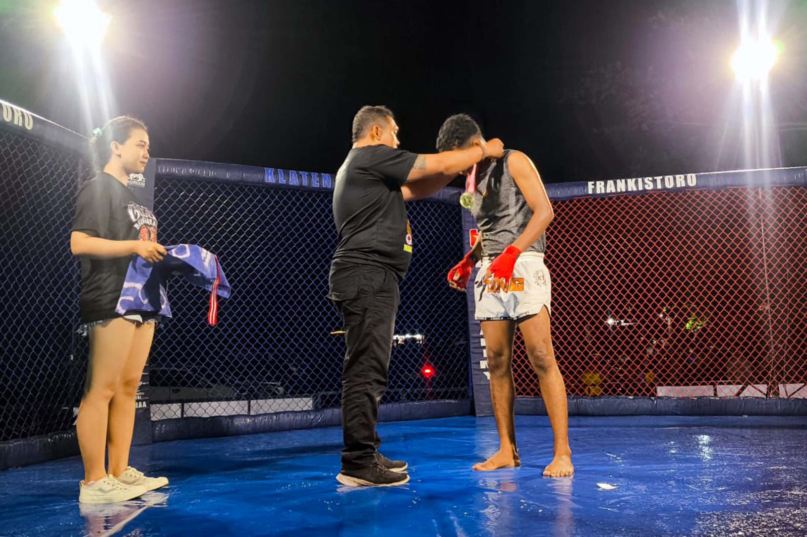 TNI AL, Dispen Kormar (Yogyakarta) PW : Atlet Muaythai Batalyon Infanteri 3 Marinir menjadi sang juara pada kejuaraan IBCA – MMA DIY tahun 2025 yang diselenggarakan di Tanjakan Clongop, Gunung Kidul, Yogyakarta. Senin (26/05/2025).