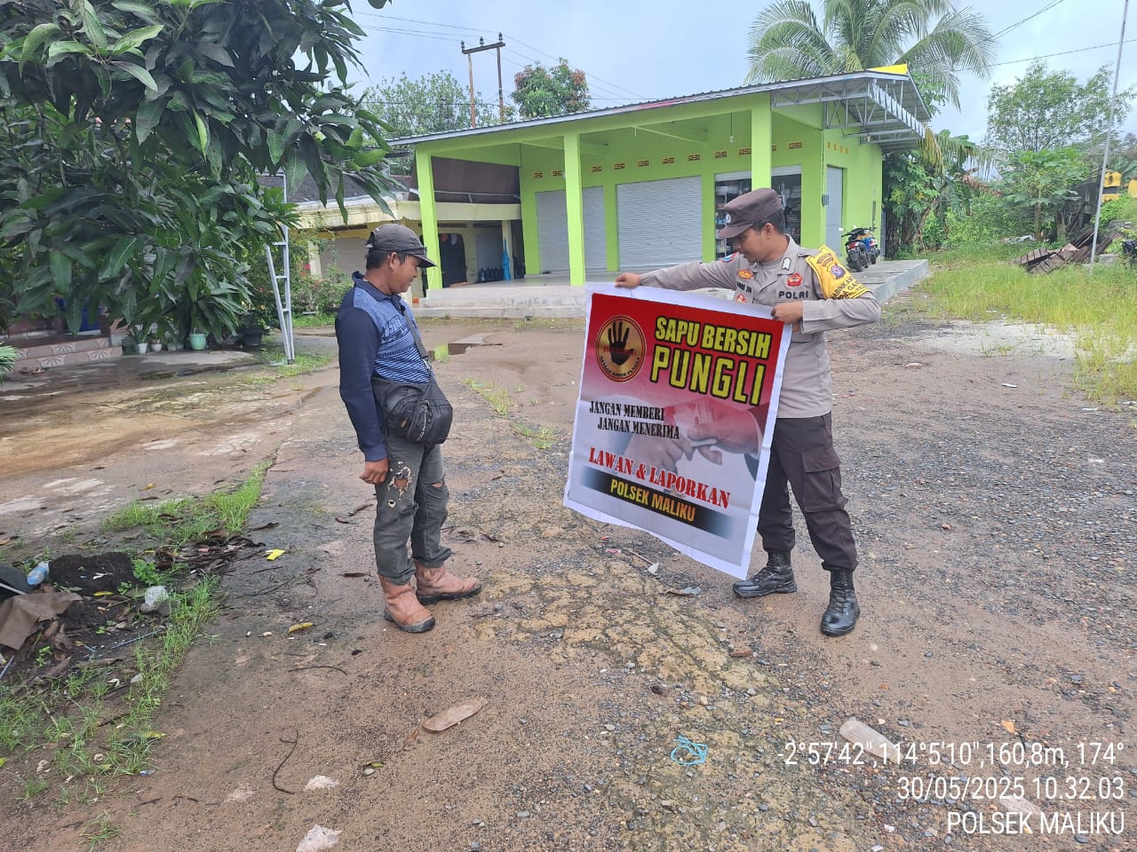 Polres Pulang Pisau – Personel Bhabinkamtibmas Desa Gandang, Polsek Maliku, Polres Pulang Pisau, Polda Kalteng, Bripka Arif Widodo melaksanakan Sosialisasi guna mensukseskan program sapu bersih pungutan liar (saber pungli) diwilayah Desa Binaannya, Jumat (30/05/2025) Pagi Dalam kesempatan ini dengan berbekal Spanduk Sapu bersih Pungli Bhabinkamtibmas Mensosialiasikan kepada warga Desa binaannya tentang keberadaan team Saber Pungli di Kabupaten Pulang Pisau Kapolres Pulang Pisau AKBP Iqbal Sengaji, S.I.K., M.Si., melalui Kapolsek Maliku Ipda Rahmadi menyampaikan Sosialisasi Saber Pungli menjadi agenda rutin yang harus dilaksanakan, agar warga masyarakat mengetahui bahwa pelayanan publik…