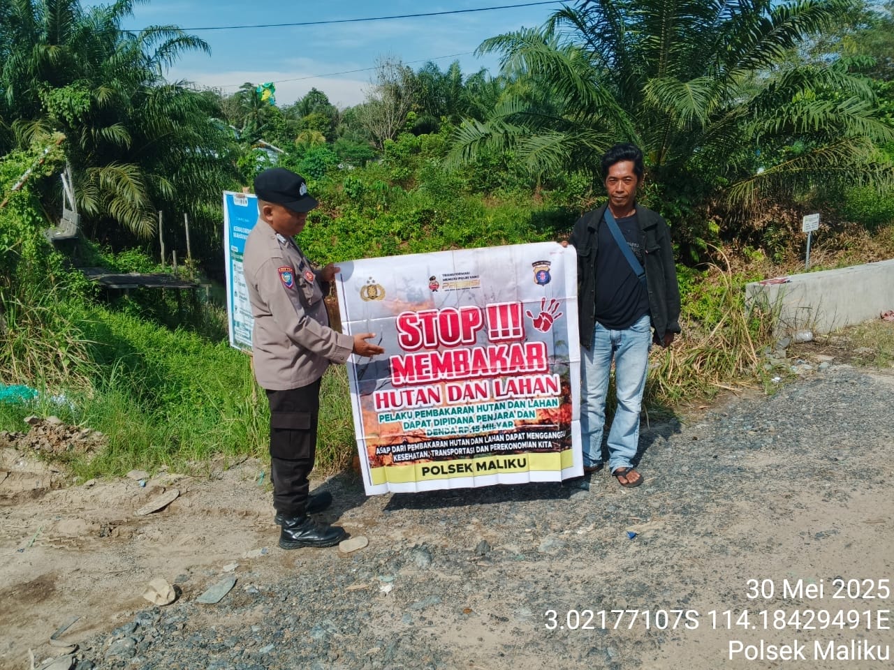 Polres Pulang Pisau – Personel Bhabinkamtibmas Desa Tahai Jaya, Polsek Maliku, Polres Pulang Pisau, Polda Kalteng, Bripka Nafiandi, S.H., melaksanakan sambang dengan warga masyarakat untuk sampaikan himbauan Larangan Membakar Hutan dan Lahan, Jumat (30/05/2025) pagi personel Bhabinkamtibmas melaksanakan antisipasi sejak dini mencegah terjadinya Karhutla di Desa binaannya, dalam kesempatan ini kepada warga masyarakat disampaikan himbauan larangan serta Sanksi Pidana Terhadap Pelaku Pembakaran Hutan dan Lahan Terpisah, Kapolres Pulang Pisau, AKBP Iqbal Sengaji, S.I.K., M.Si., melalui Kapolsek Maliku Ipda Rahmadi menyampaikan, kegiatan ini bertujuan untuk menumbuhkan kesadaran warga masyarakat dalam…
