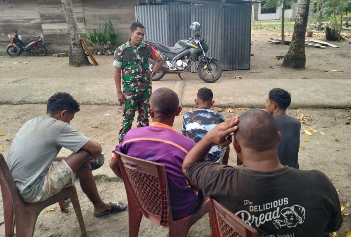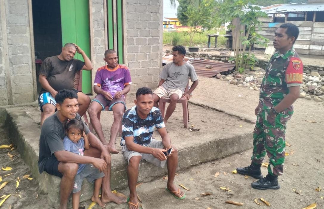 SBB PW 30 Mei 2025 – Babinsa Koramil 1513-02/Taniwel, Serda Toni Tasane, melaksanakan kegiatan komunikasi sosial (komsos) bersama masyarakat Desa Walakone, Kecamatan Taniwel Timur, Kabupaten Seram Bagian Barat (SBB),