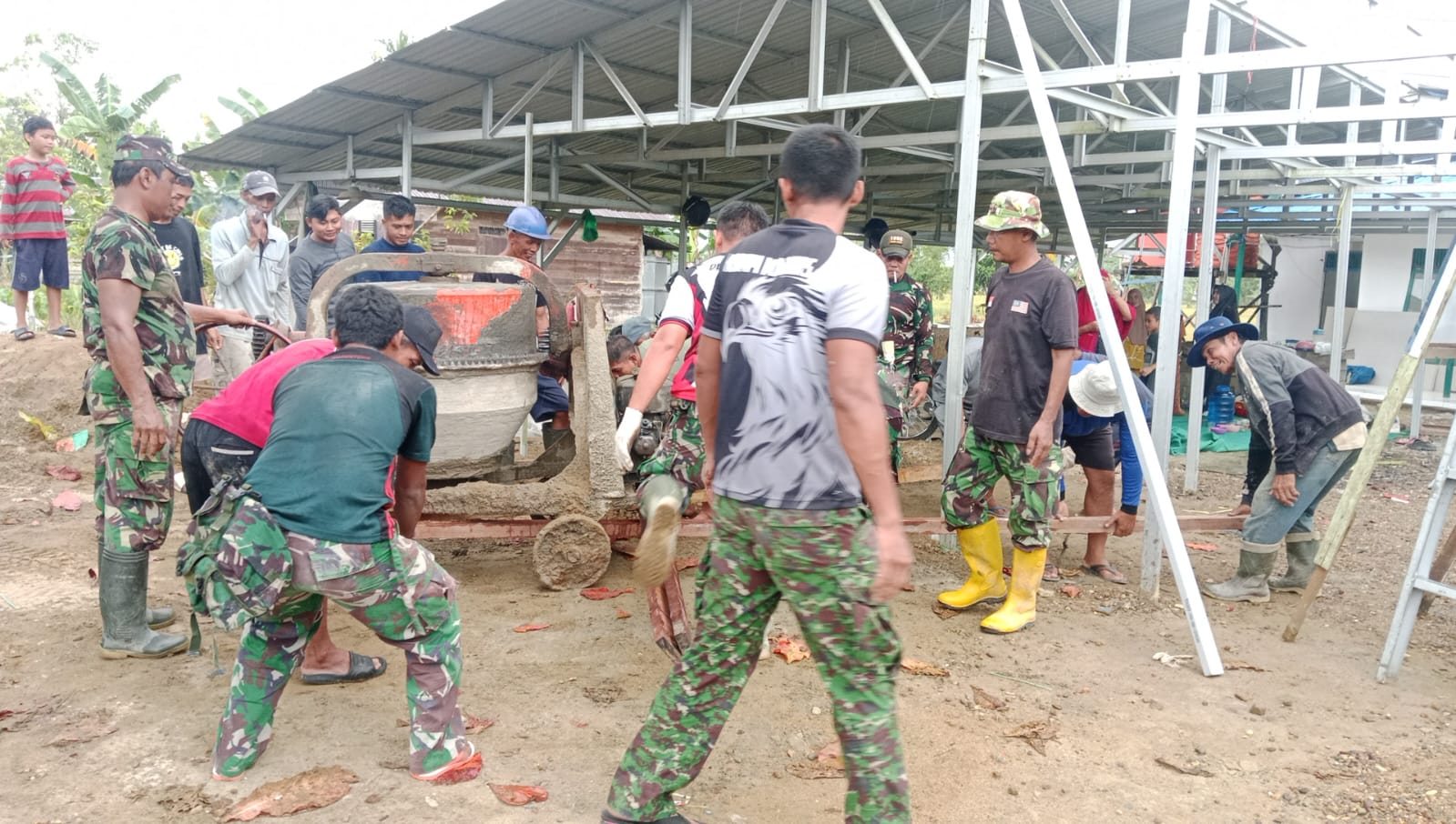 Haruyan, Hulu Sungai Tengah – PW: Upaya percepatan rehabilitasi Langgar Darussalam dalam program TNI Manunggal Membangun Desa (TMMD) ke-124 Kodim 1002/Hulu Sungai Tengah (HST) di Desa Pengambau Hilir Luar terus dilakukan.