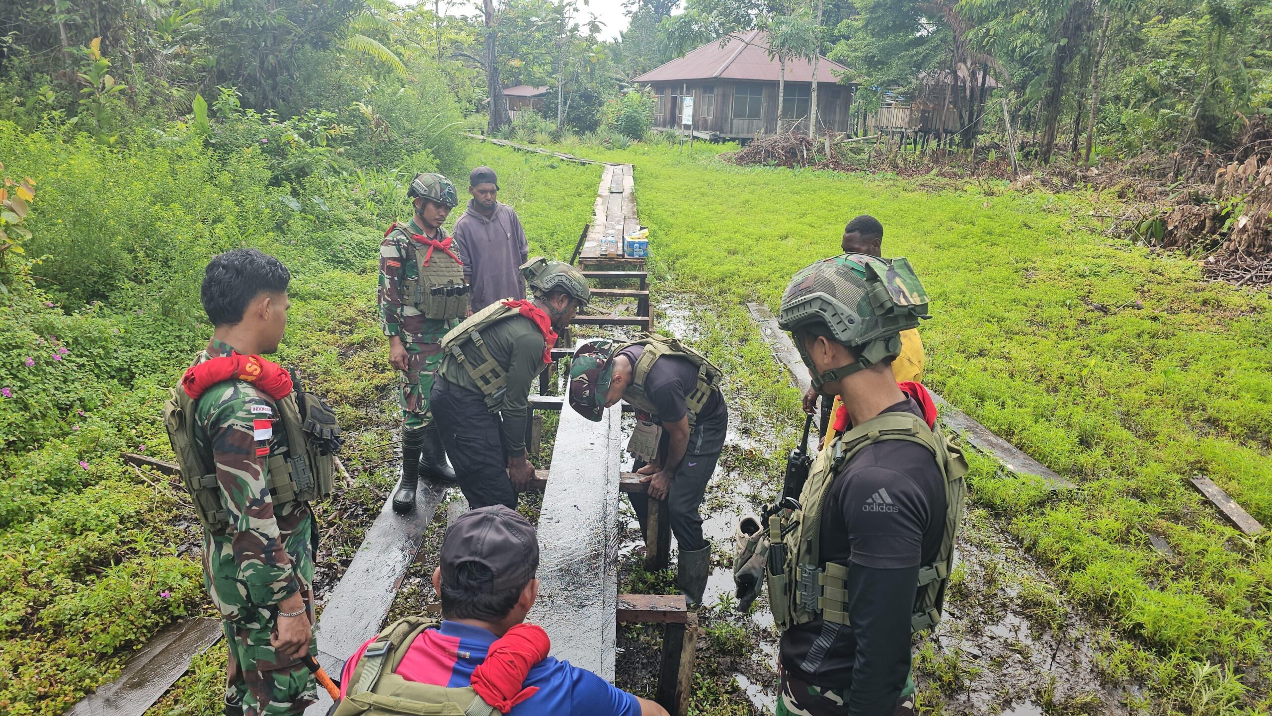 Papua, PW 30 Juni 2025 – Prajurit Satuan Tugas (Satgas) Pamtas Mobile Yonif 733/Masariku kembali menunjukkan komitmennya dalam membangun infrastruktur pendidikan dengan melaksanakan kegiatan perbaikan jembatan di Sekolah Dasar Rimba Mumugu, Distrik Sawa Erma. Kegiatan ini merupakan bagian dari program pembangunan infrastruktur yang bertujuan meningkatkan akses pendidikan bagi anak-anak di daerah terpencil. “Kami berkomitmen untuk memastikan anak-anak dapat mengakses pendidikan dengan aman dan nyaman. Perbaikan jembatan ini adalah salah satu upaya konkret kami dalam mendukung program pendidikan di daerah perbatasan,” ujar Komandan Satgas Yonif 733/Masariku, Letkol Inf Julius Jongen…
