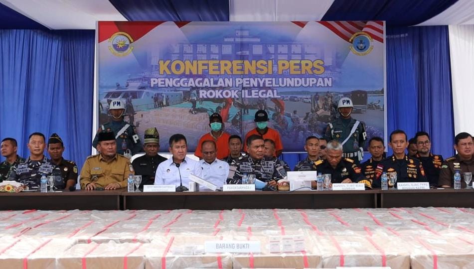 Jalesveva Jayamahe, Jakarta, 30 Juni 2025 — TNI AL terus berkomitmen dalam menjaga kedaulatan Perairan Indonesia, pekan kemarin tim gabungan Fleet One Quick Response (F1QR) Pangkalan TNI AL (Lanal) Dumai dan personel Koarmada I berhasil mengamankan KLM. Harapan Indah 99, GT 168 dengan Muatan diduga Rokok ilegal merek Camclar sebanyak 5.120 dus tanpa cukai dari Thailand, di Perairan Kuala Selat Akar Kabupaten Bengkalis Provinsi Riau. Hal tersebut disampaikan oleh Panglima Koarmada I Laksamana Muda TNI Fauzi dalam Konfrensi Pers yang dilaksanakan di Mako Lanal Dumai. Senin (30/06). “Sekali lagi…