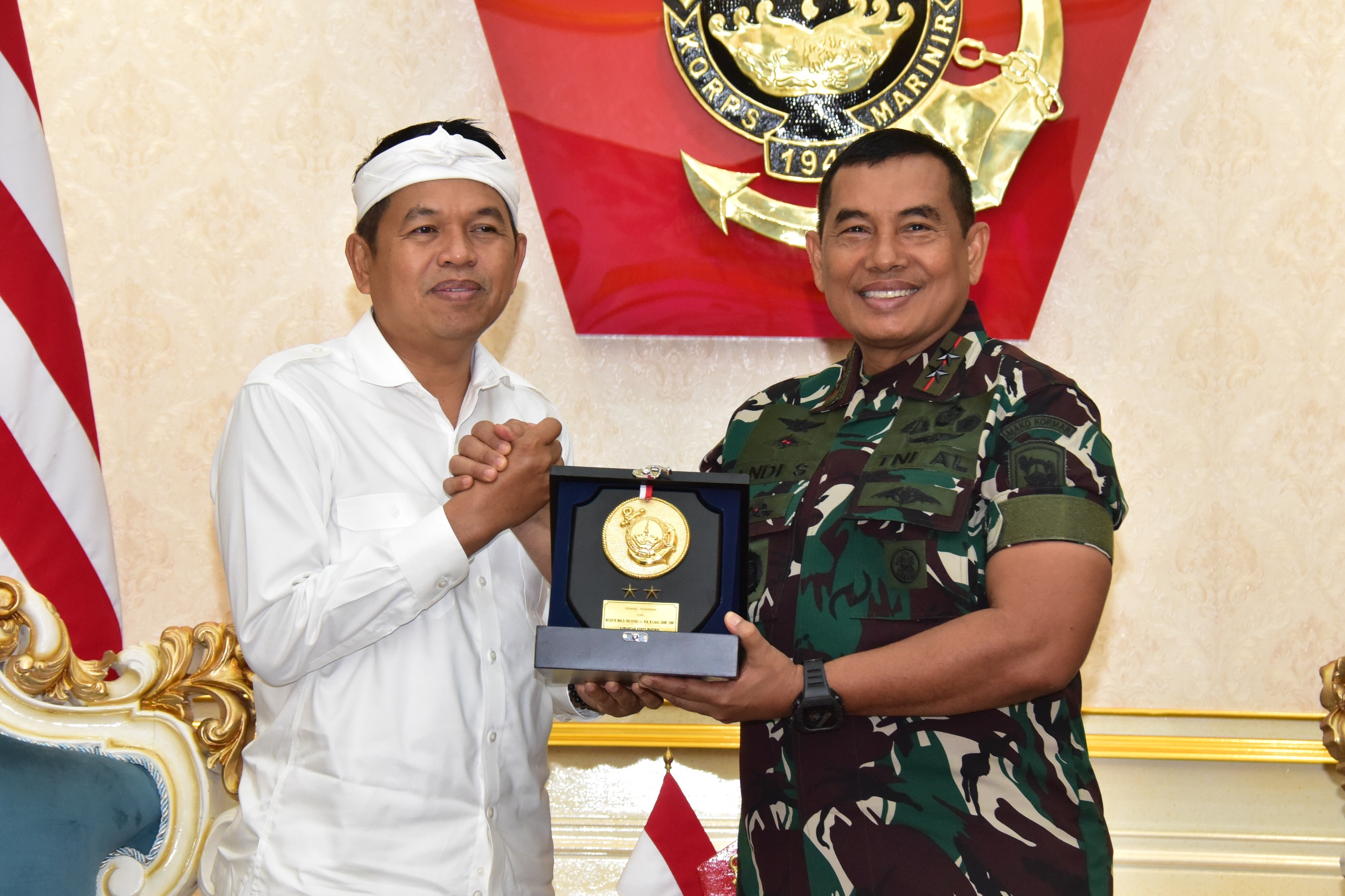 (Jakarta)* Komandan Korps Marinir (Dankormar) Mayor Jenderal TNI (Mar) Dr. Endi Supardi, S.E., M.M., M.Tr.Opsla., CHRMP., CRMP., menerima kunjungan kerja Gubernur Provinsi Jawa Barat, Bapak Dedi Mulyadi, di Admiral Room, Gedung Utama Markas Komando Korps Marinir (Mako Kormar), Jalan Prajurit KKO Usman dan Harun No. 40, Kwitang, Jakarta Pusat, pada Senin (30/06/2025). Dalam kunjungan tersebut, Dankormar didampingi oleh Wakil Komandan Korps Marinir (Wadan Kormar) Brigjen TNI (Mar) Muhammad Nadir, M.Tr.Opsla., Inspektur Korps Marinir (Ir Kormar) Brigjen TNI (Mar) Ahmad Fajar, S.M., Komandan Pasmar 1 Kolonel Marinir Ena Sulaksana, S.E., serta…