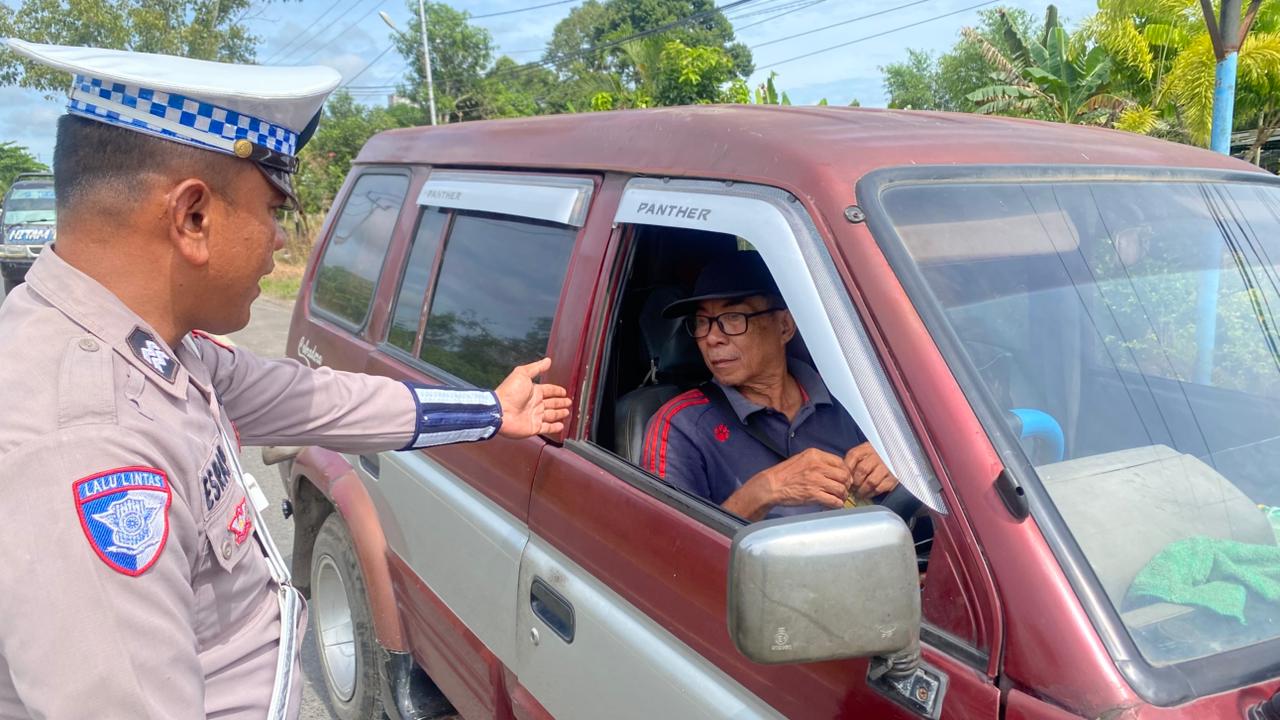 Anggota Satlantas Polres Pulang Pisau Memberi Teguran Kepada Pengemudi Yang Tidak Menggunakan Sabuk Pengaman dengan baik