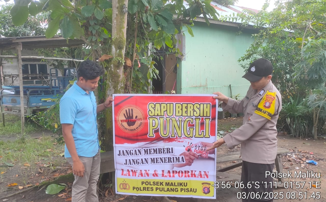 Kapolres Pulang Pisau AKBP Iqbal Sengaji, S.I.K., M.Si., melalui Kapolsek Maliku Ipda Rahmadi menyampaikan Program Sapu Bersih Pungutan Liar (saber pungli) bertujuan untuk meningkatkan kualitas pelayanan kepada warga masyarakat, dengan diawasi oleh berbagai lapisan masyarakat kami yakin bisa dilaksanakan Birokrasi dan Pemerintahan yang bersih dan transparan tanpa pungli