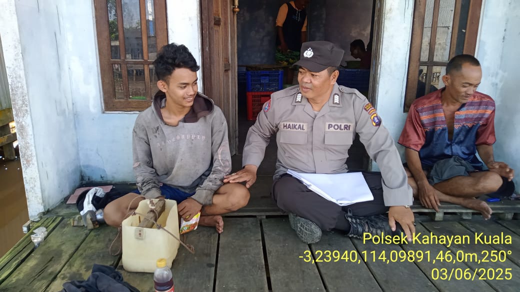 Polres Pulang Pisau – Polsek Kahayan kuala, Polres Pulang Pisau, Polda Kalteng, Pers Bhabinkamtibmas melaksanakan giat himbauan larangan dan stop narkoba di wilayah kecamatan Kahayan kuala Kabupaten Pulang Pisau Provinsi Kalimantan Tengah, Selasa (3/06/2025).