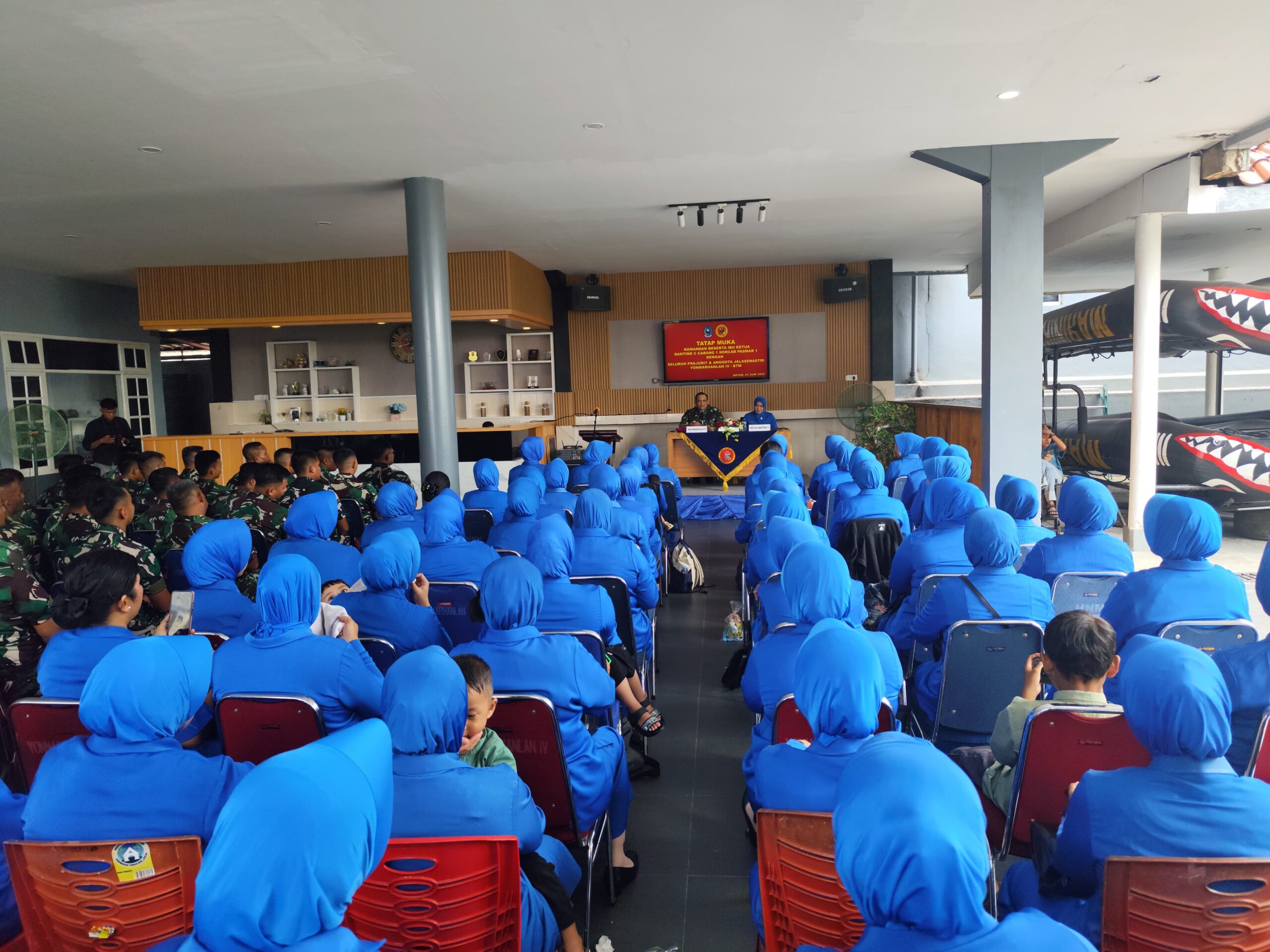 TNI AL, Dispen Kormar, Pasmar 1 (Batam). Komandan Batalyon Marinir Pertahanan Pangkalan (Danyonmarhanlan) IV Batam Letkol Marinir Tomas Febrianto, M.Tr.Opsla., menggelar acara tatap muka keluarga besar Yonmarhanlan IV bertempat di Ruang Rekreasi Prajurit Yonmarhanlan IV Batam, Selasa (03/06/2025).