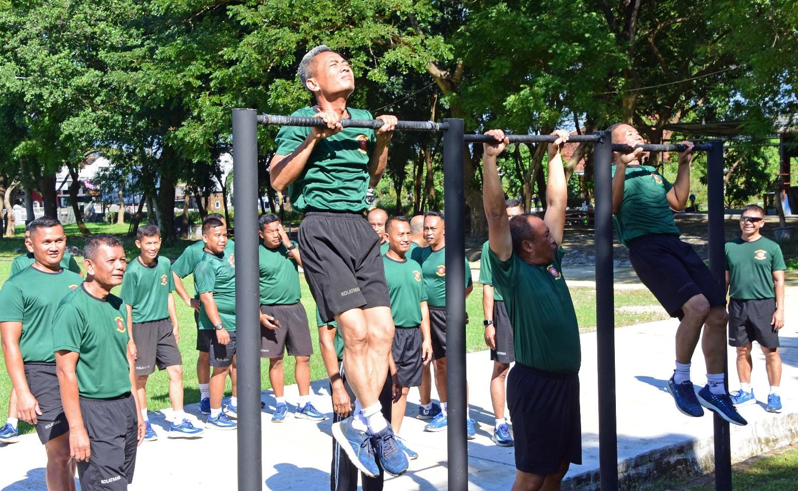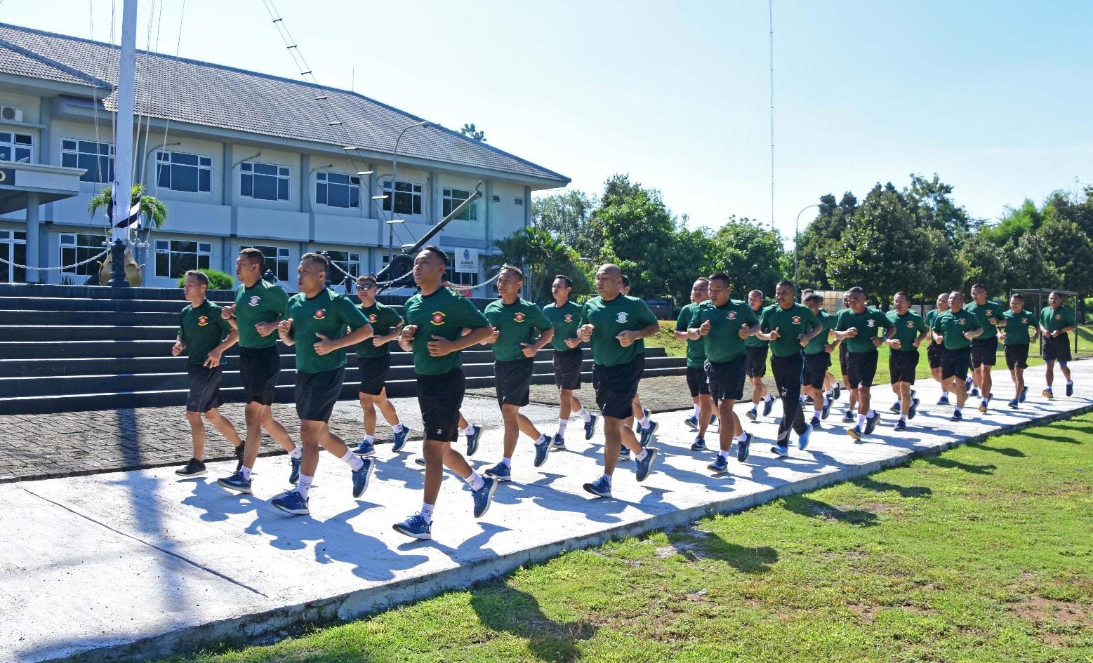 Dispen Kormar (Pasuruan) PW : Komandan Komando Latih Korps Marinir (Dankolatmar) Kolonel Marinir Dede Harsana, S.A.P., M.Han bersama Perwira Staf Mako Kolatmar dan Perwira Kolatmar melaksanakan olah raga bersama dalam rangka membina dan menjaga kebugaran tubuh yang menjadi kegiatan rutin meningkatkan kemampuan fisik juga membangun kerja sama dan solidaritas antar perwira, Mako Kolatmar, Grati, Pasuruan. Rabu (04/06/2025).