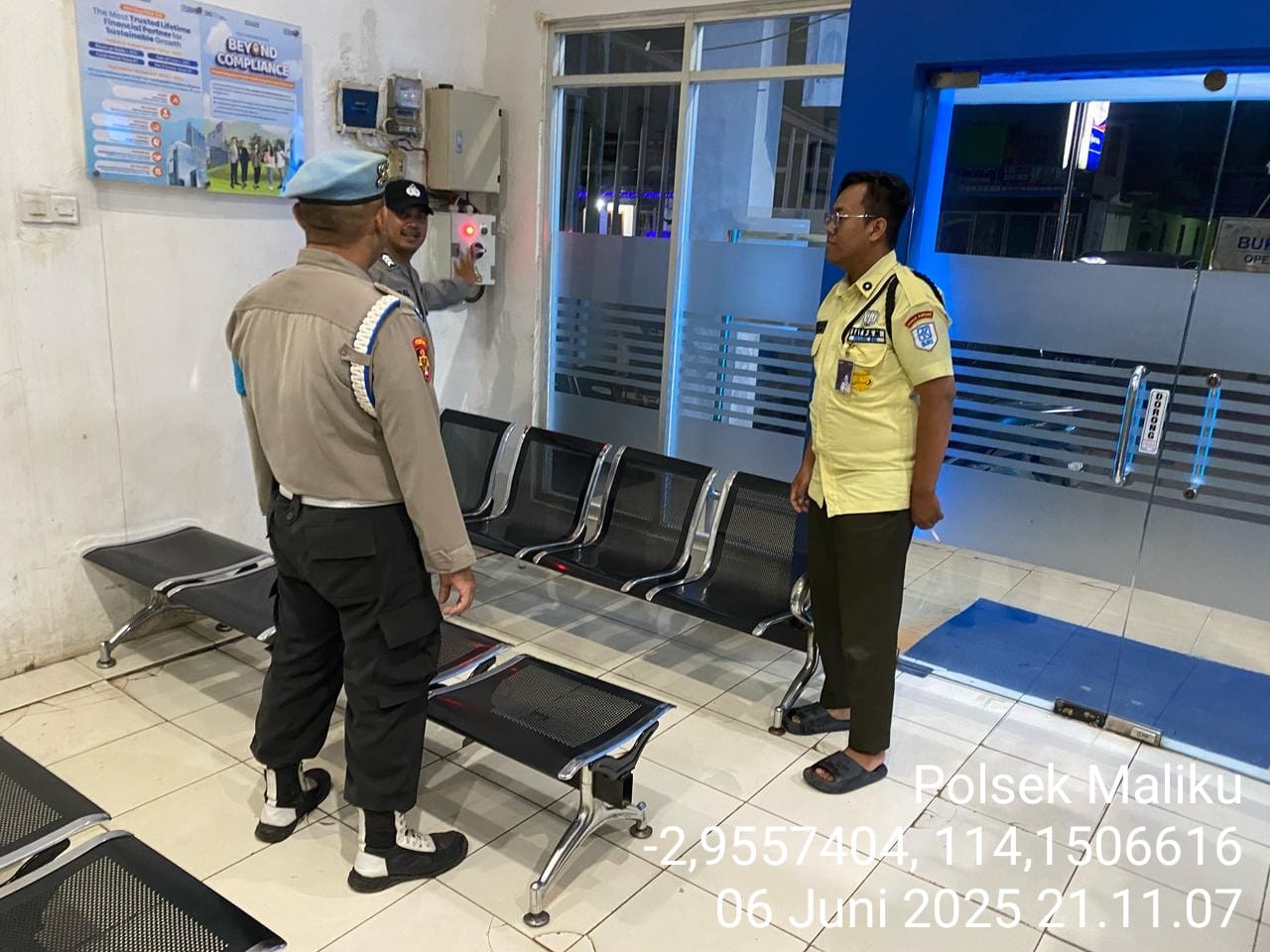 Personel melaksanakan Patroli Malam dengan sasaran lingkungan obyek vital dan pertokoan diwilayah hukum Polsek Maliku, dalam kegiatan patroli petugas memastikan tidak terdapat potensi gangguan kamtibmas serta mengecek kondisi kamera Cctv yang terpasang