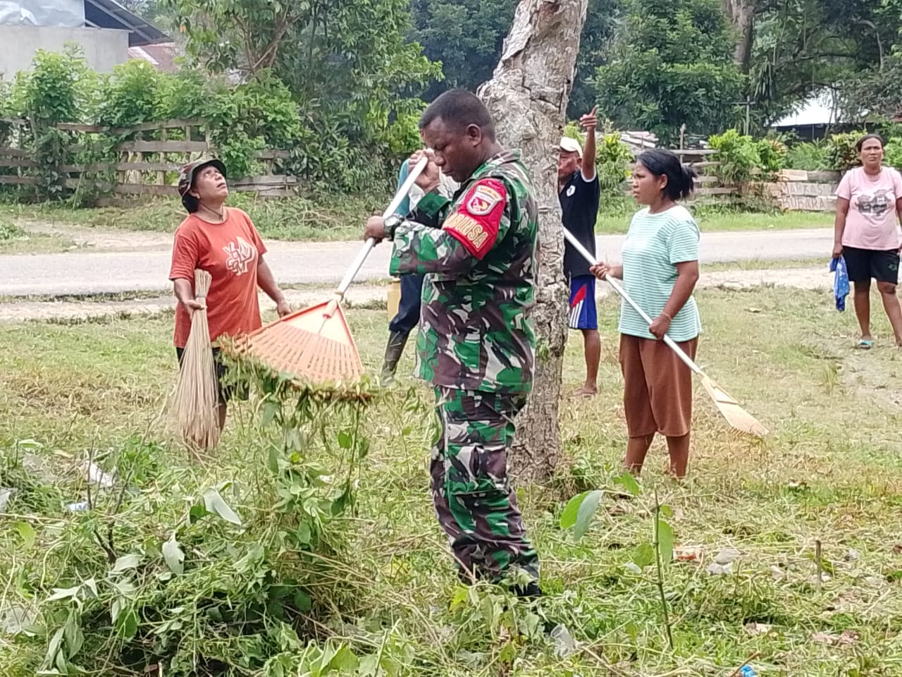 Kegiatan kerja bakti tersebut difokuskan pada pemotongan rumput dan pembersihan lingkungan desa. Sertu Jacob Leuwol bersama puluhan warga tampak kompak dan antusias membersihkan semak belukar di sepanjang jalan desa serta area publik yang sering digunakan warga untuk beraktivitas.