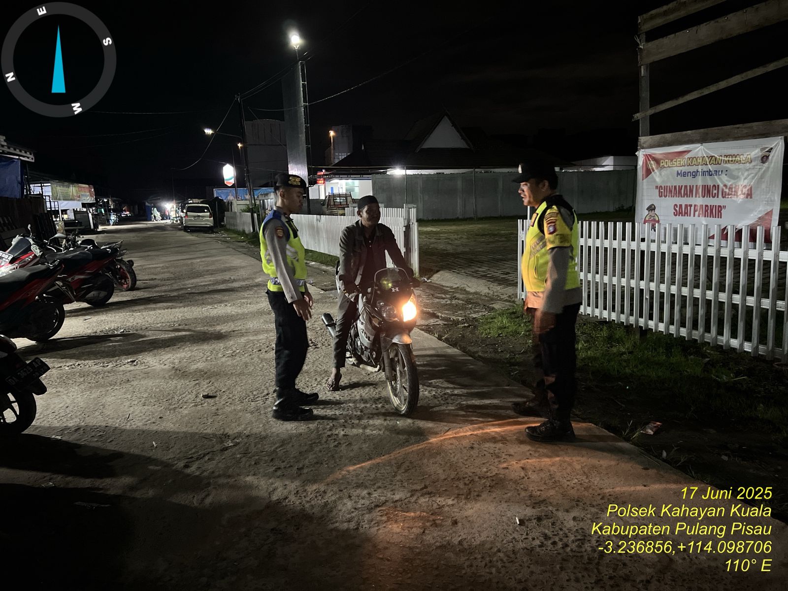 Giat Patroli dengan sasaran objek vital dan tempat rawan kejahatan, personel Polsek Kahayan Kuala menyampaikan Pesan Pesan Kamtibmas juga himbauan agar bersama saling menjaga keamanan dan ketertiban.