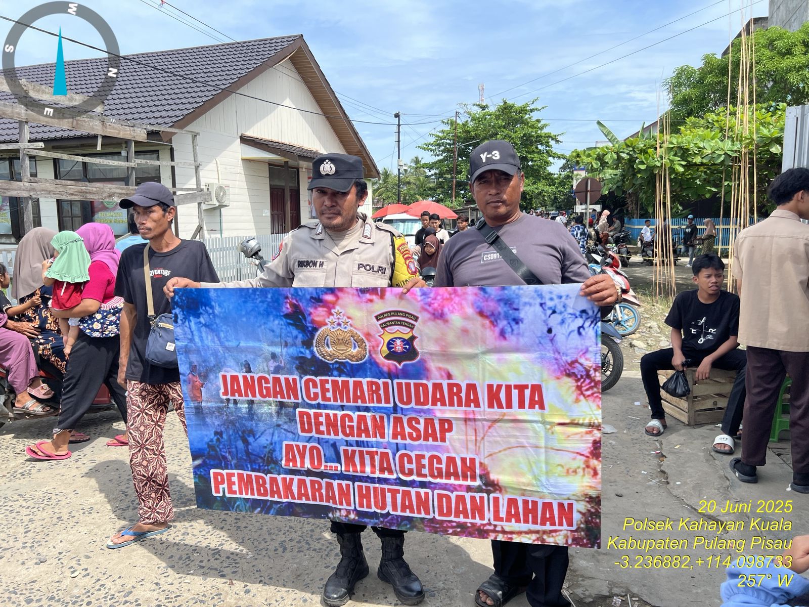 Polres Pulang Pisau- Polsek kahayan kuala, Resor Pulang Pisau, Polda Kalteng, melakukan sambang dan himbauan warga agar tidak membakar hutan dan lahan di Kecamatan kahayan kuala, kabupaten pulang pisau,Jum’at (20/06/2025).Jam.09.00 Wib.