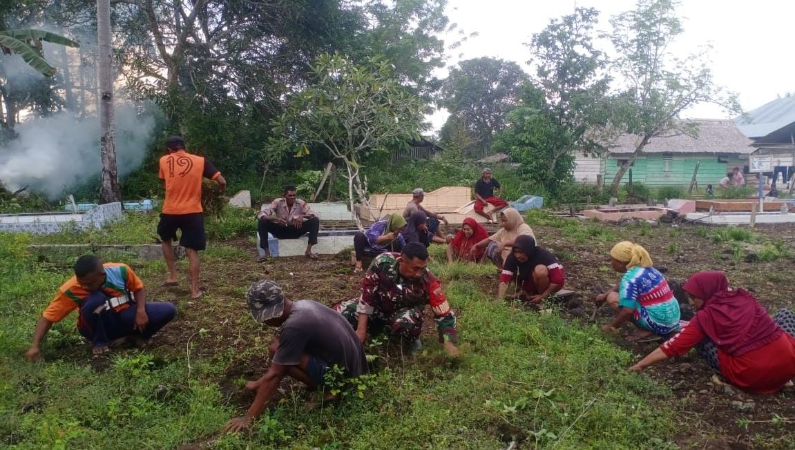 SBB PW 21 Juni 2025 — Babinsa Koramil 1513-02/Taniwel, Serda Gani Sisin, bersama masyarakat Desa Kasieh, Kecamatan Taniwel, Kabupaten Seram Bagian Barat (SBB), melaksanakan kegiatan bakti sosial berupa pembersihan Tempat Pemakaman Umum (TPU)