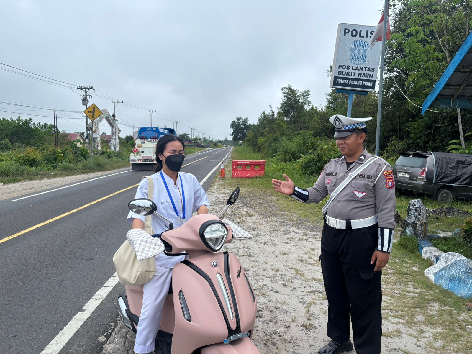 Polres Pulang Pisau – Satuan Lalu Lintas – Satlantas Polres Pulang Pisau memberikan pembinaan/ teguran simpatik kepada pengendara sepeda motor yang tidak menggunakan helm,