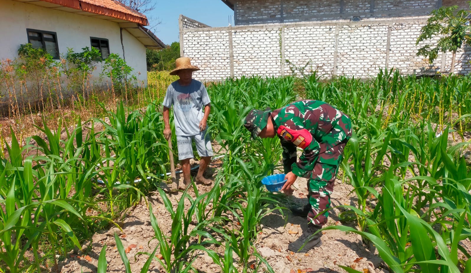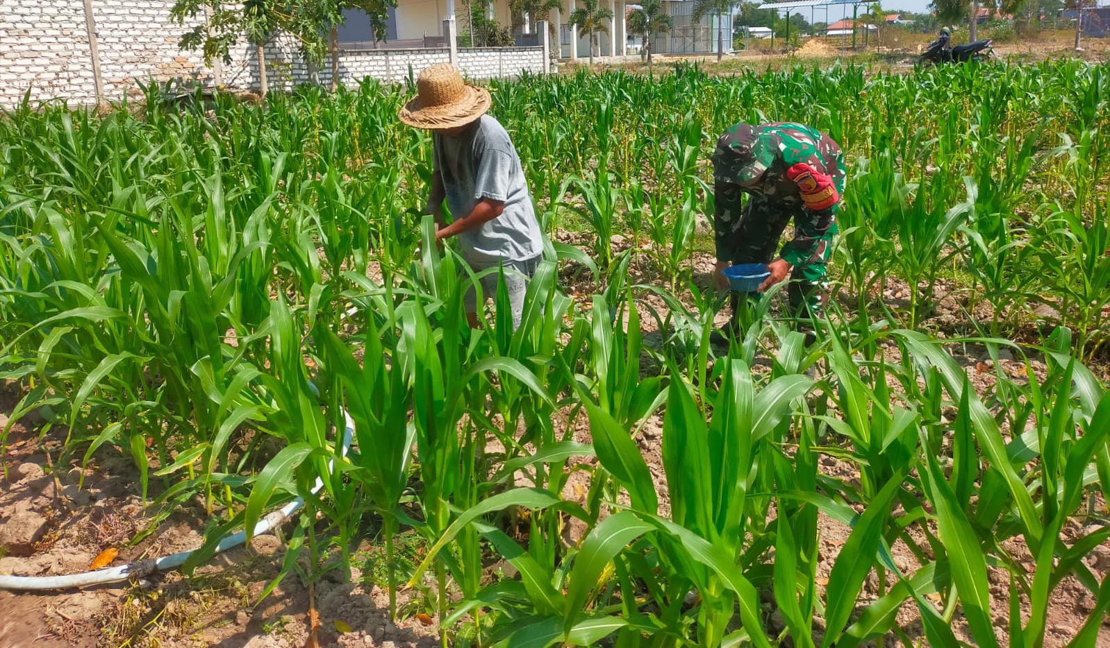 Dalam kegiatan tersebut, Serda Edi Suswanto turut serta membantu Natun, salah satu petani setempat, dalam melakukan pemupukan pada tanaman jagung miliknya. Pendampingan ini bertujuan untuk memastikan tanaman jagung dapat tumbuh secara maksimal dan menghasilkan panen yang optimal.