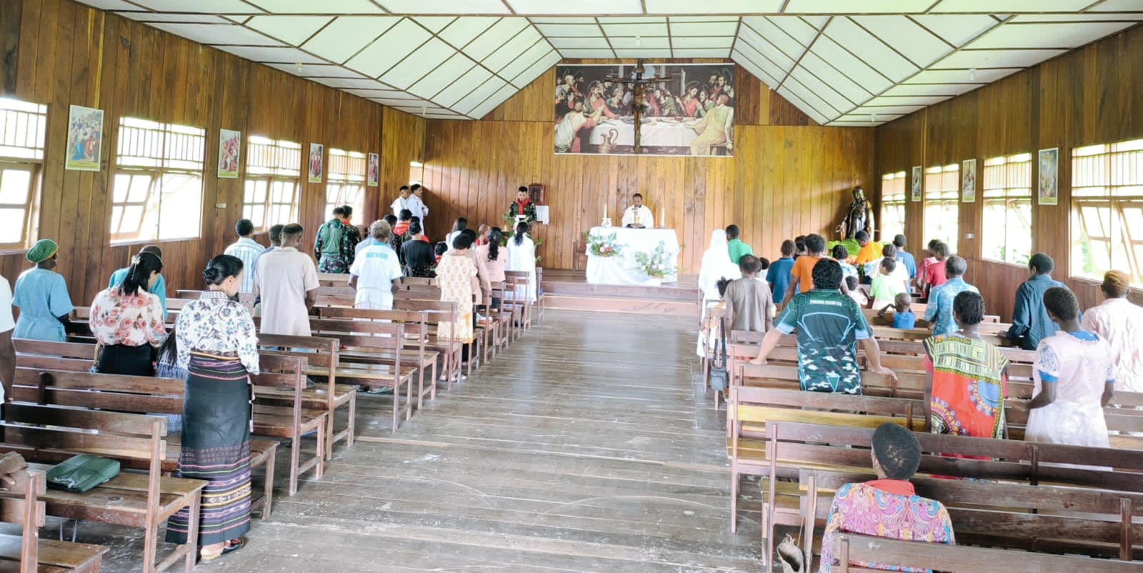 Papua PW Prajurit Satuan Tugas Pamtas Mobile Yonif 733/Masariku melaksanakan kegiatan ibadah bersama dengan masyarakat di Kampung Mumugu sebagai bagian dari upaya pendekatan teritorial untuk mempererat hubungan TNI dengan rakyat.