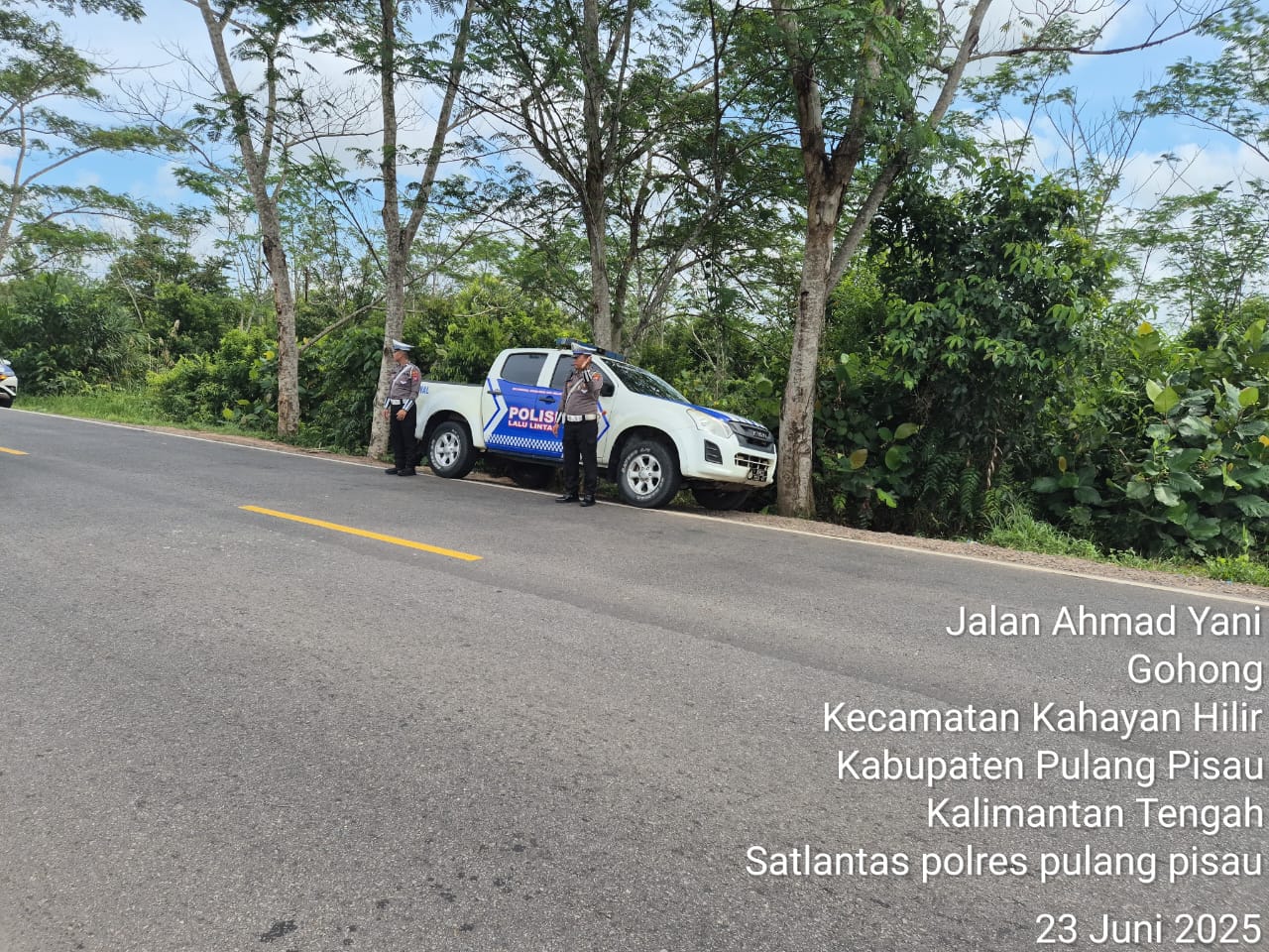serta memantau situasi arus lalu lintas dan aktivitas masyarakat di jalan raya. Personel Sat Lantas Polres Pulang Pisau juga memberikan himbauan kepada pengguna jalan untuk mematuhi peraturan lalu lintas dan menjaga keselamatan berkendara.