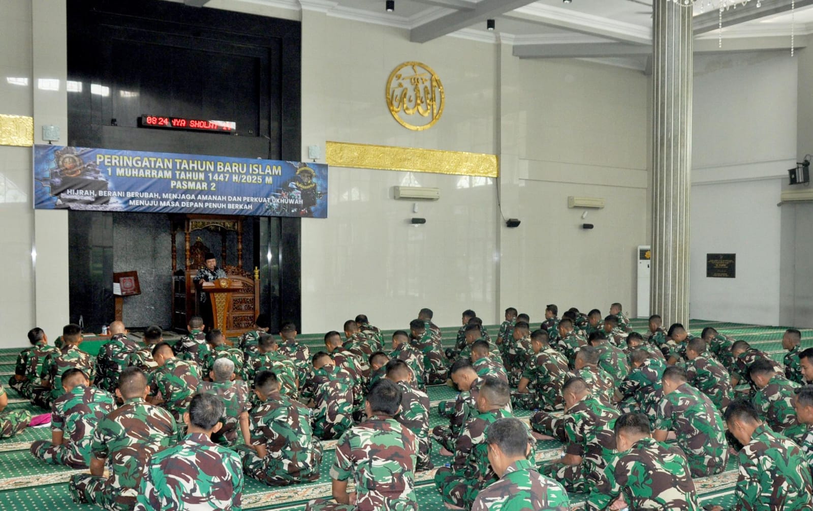 Dengan mengusung tema “Hijrah, Berani Merubah, Menjaga Amanah dan Perkuat Ukhuwah Menuju Masa Depan Penuh Berkah”, kegiatan ini menjadi wujud rasa syukur kepada Allah SWT atas datangnya tahun baru 1447 Hijriyah. Acara dibuka oleh Asisten Intelijen (Asintel) Komandan Pasmar 2 Kolonel Marinir Dwi Hartono, M.Tr.Opsla., dan turut dihadiri oleh Asisten Operasi Komandan Pasmar 2 Letkol Marinir Widarta Kusuma, S.E., M.Tr.Opsla., para Perwira Staf Mako Pasmar 2, serta seluruh prajurit Bintara dan Tamtama Denmako Pasmar 2.