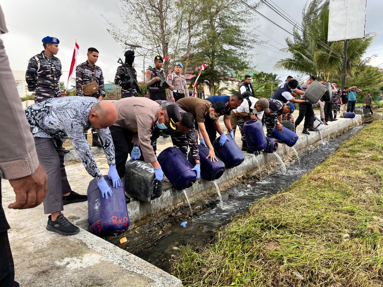 Jakarta, 27 Juni 2025 – – – Sinergitas Pangkalan Angkatan Laut (Lanal) Aru di bawah jajaran Koarmada III bersama Kepolisian Resor Kepulauan Aru (Polres Aru) dan Forum Koordinasi Pimpinan Daerah (Forkopimda) Kabupaten Kepulauan Aru berhasil mengamankan dan memusnahkan 2.305 liter minuman keras (miras) ilegal jenis sopi, bertempat di Mako Polres Kepulauan Aru, Kecamatan Pulau-Pulau Aru, Kabupaten Kepulauan Aru, Provinsi Maluku. Kamis (26/6).
