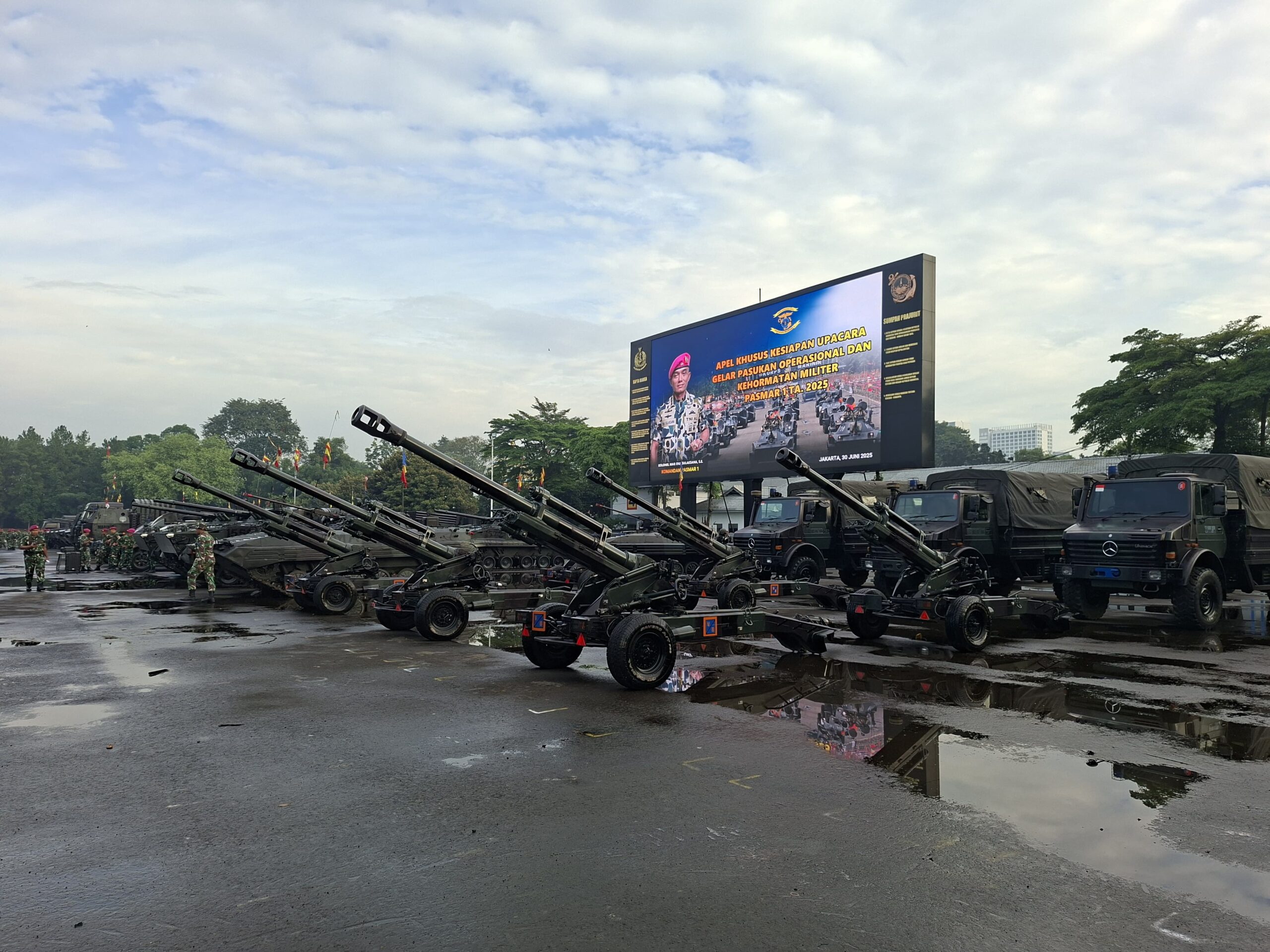 TNI AL, Dispen Kormar, Pasmar 1 (Jakarta). Kesenjataan Resimen Artileri 1 Marinir (Menart 1 Mar) digelar saat Apel Khusus Danpasmar 1 untuk kegiatan Validasi Organisasi Korps Marinir di Lapangan Brigif 1 Kesatrian Marinir Hartono Cilandak, Jakarta Selatan, Senin (30/06/2025).