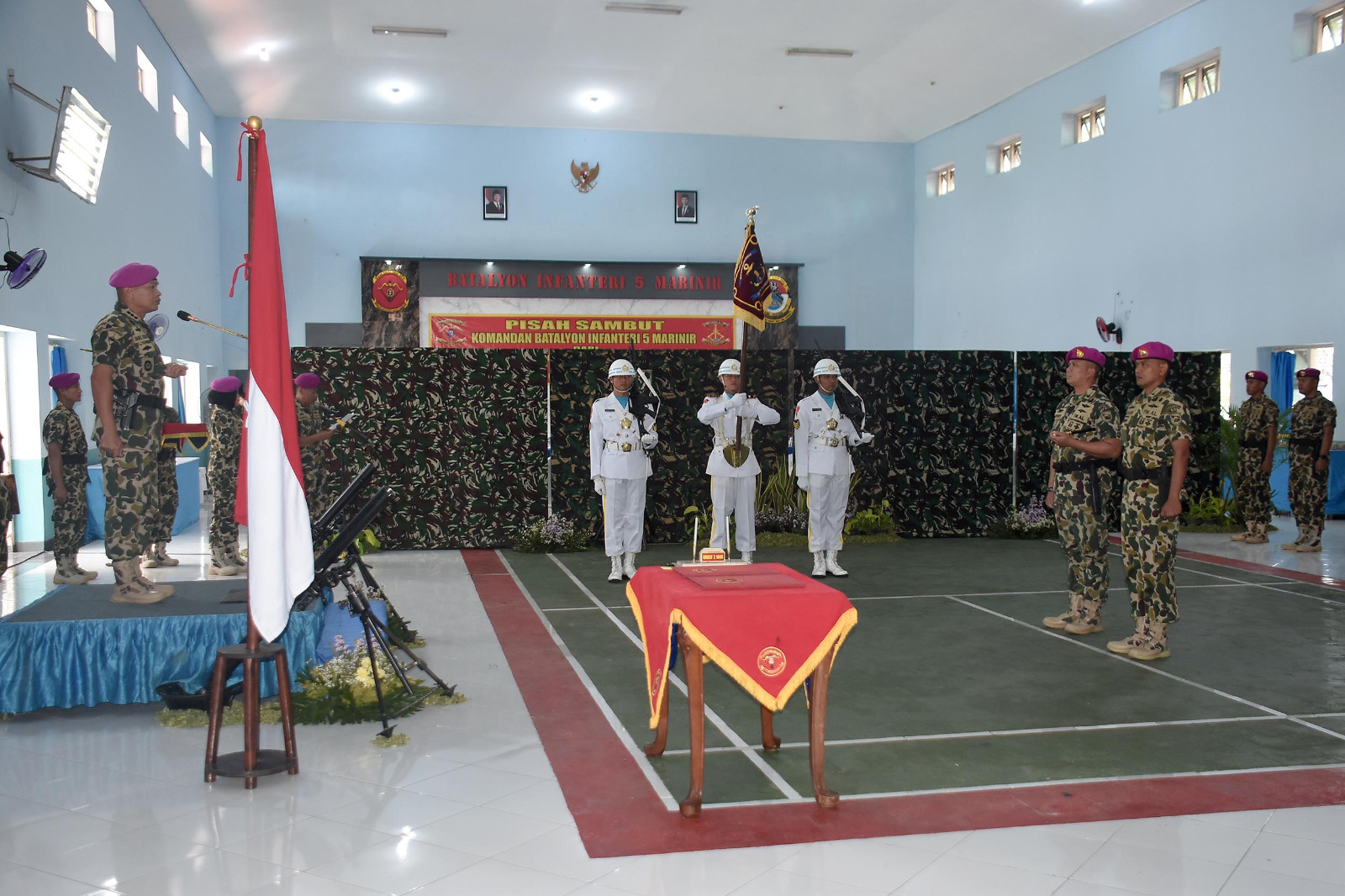 Jabatan Komandan Batalyon Infanteri 5 Marinir diserahterimakan dari pejabat lama Letkol Marinir Herry Suryono kepada Mayor Marinir Teguh Pristiyanto Dwi S., S.E., M.Tr.Opsla. yang sebelumnya menjabat sebagai Perwira Staf Logistik (Paslog) Brigif 1 Marinir sedangkan Letkol Marinir Herry Suryono akan menempati jabatan baru sebagai Perwira Staf Operasi (Pasops) Brigif 2 Marinir.