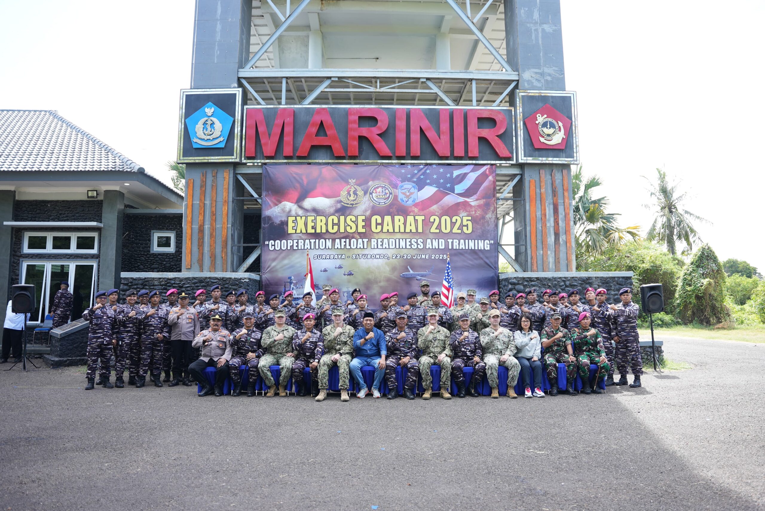 Jakarta, 30 Juni 2025 – – – Latihan Bersama (Latma) Cooperation Afloat Readiness and Training (CARAT) 2025 antara TNI AL bersama US Navy dan US Marine Corps (USMC) resmi ditutup pada upacara penutupan yang dipimpin oleh dipimpin oleh Komandan Satuan Kapal Eskorta (Dansatkor) Koarmada II Kolonel Laut (P) I Gede Putu Iwan, mewakili Panglima Koarmada II Laksda TNI I G. P. Alit Jaya, S.H., M.Si, bersama Expeditionary Strike Group Seven Capt Adam Bellin, bertempat di Pusat Latihan Tempur 5 Banongan, Situbondo. Minggu (29/6).