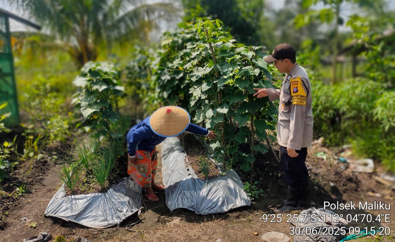 Personel Polsek Maliku dalam kegiatan sambang menyampaikan Program 1 (Pekarangan Pangan Bergizi) Ketahanan Pangan untuk warga masyarakat, sebagai Polisi penggerak ketahanan pangan mengajak masyarakat memanfaatkan pekarangan rumahnya untuk di tanami hortikultura serta tanaman pangan lainnya guna mendukung program makan bergizi gratis.