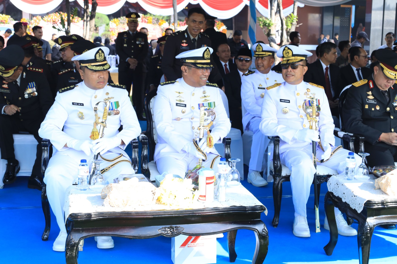 Inspektur Pusat Penerbangan TNl Angkatan Laut (lr Puspenerbal), Kolonel Yohanes Tambunan mewakili Komandan Puspenerbal, Laksda TNl Bayu Alisyahbana menghadiri peringatan Hari Ulang Tahun (HUT) Bhayangkara ke-79 Tahun 2025 yang digelar di Mapolda Jawa Timur, Selasa (1/7/2025)