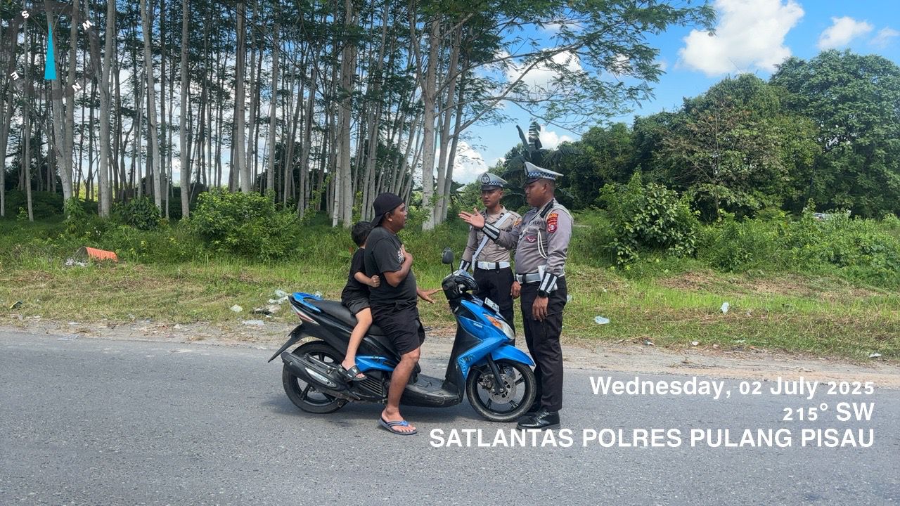 Polres Pulang Pisau – Satuan Lalu Lintas – Satlantas Polres Pulang Pisau memberikan pembinaan/ teguran simpatik kepada pengendara sepeda motor yang tidak menggunakan helm,