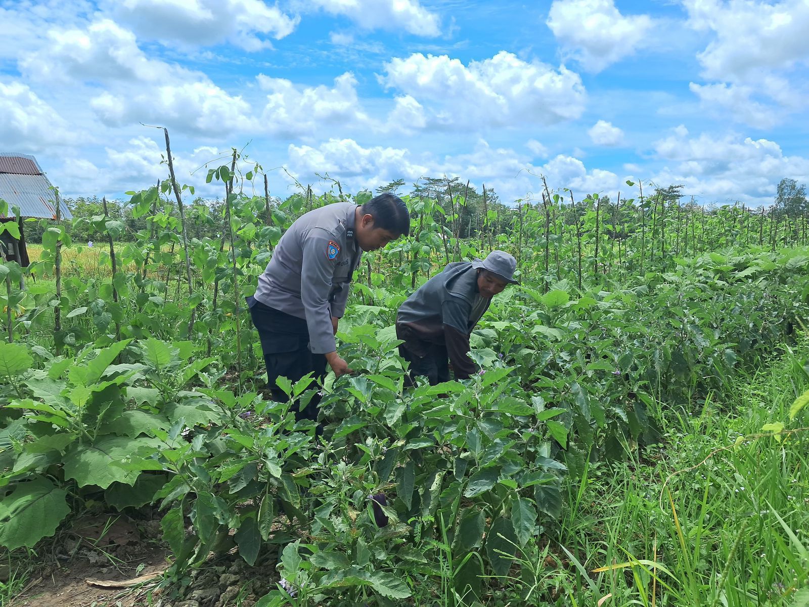 Pulang Pisau – Sat Binmas Polres Pulang Pisau, Personil Satuan Pembinaan Masyarakat (Sat Binmas) melaksanakan kegiatan pengecekan ketahanan pangan, Kegiatan ini mencakup pemantauan kondisi tanaman terong sebagai upaya memastikan ketersediaan bahan pangan dan mendukung stabilitas ekonomi di wilayah tersebut.