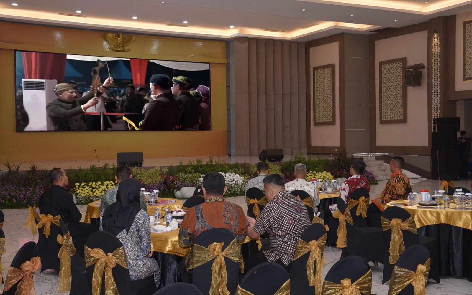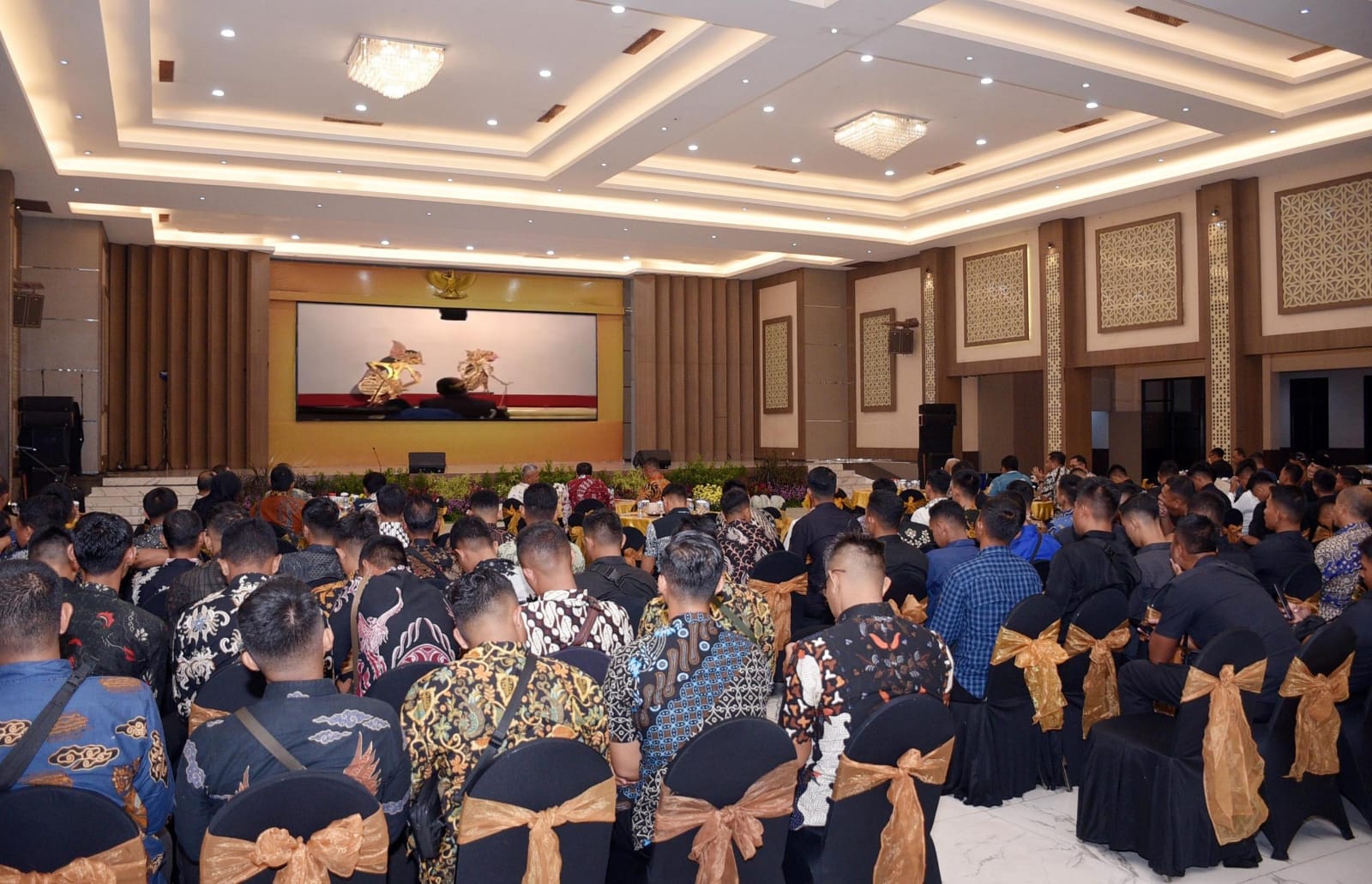 Dispen Kormar TNI AL (Surabaya) PW : Aslog Danpasmar 2 Kolonel Marinir Bayu Aji Alambhana menyaksikan pagelaran wayang kulit yang diselenggarakan di Gedung Mahameru Polda Jawa Timur, Jalan Ahmad Yani No. 116, Gayungan, Surabaya, Jumat (04/07/2025).