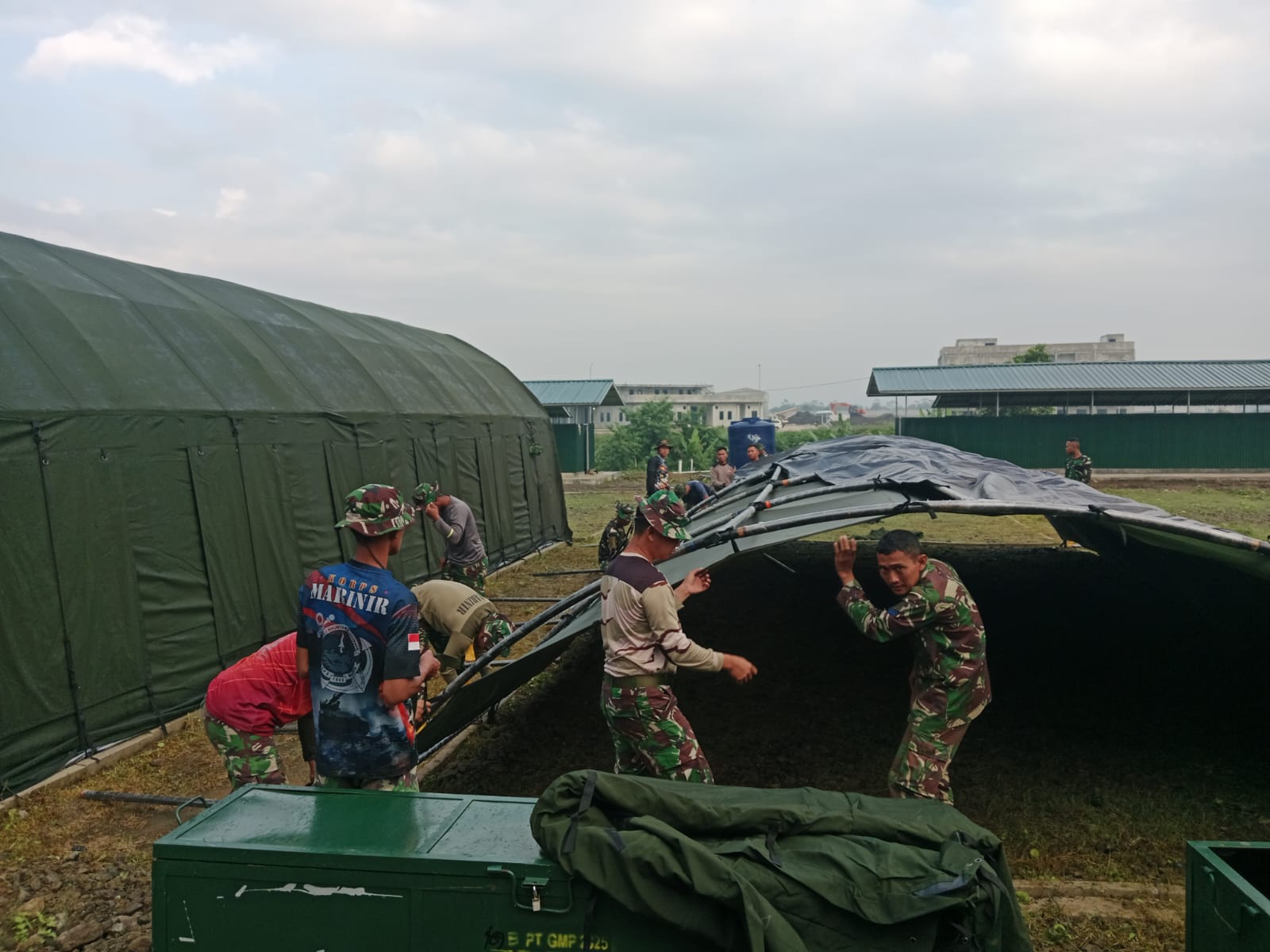 TNI AL. Pasmar 1. Menjelang pelaksanaan Upacara Validasi Organisasi (Valor), Prajurit Batalyon Zeni 1 Marinir (Yonzeni 1 Mar) melaksanakan kegiatan penyiapan messing prajurit yang bertempat di Pusdiklatpassus, Batujajar, Bandung, Jawa Barat. Minggu (06/07/2025).