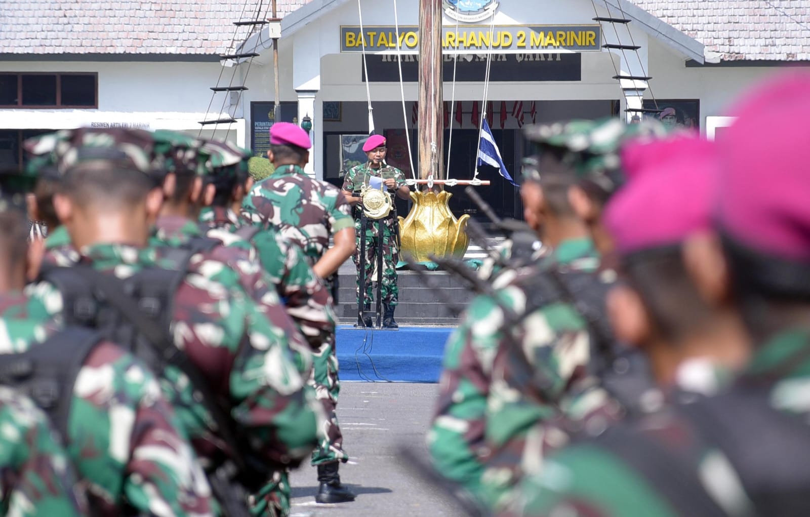 Wadan Pasmar 2 Pimpin Apel Pengecekan Kesiapan Pasukan Upacara Gelar Satuan Operasional dan Kehormatan Militer