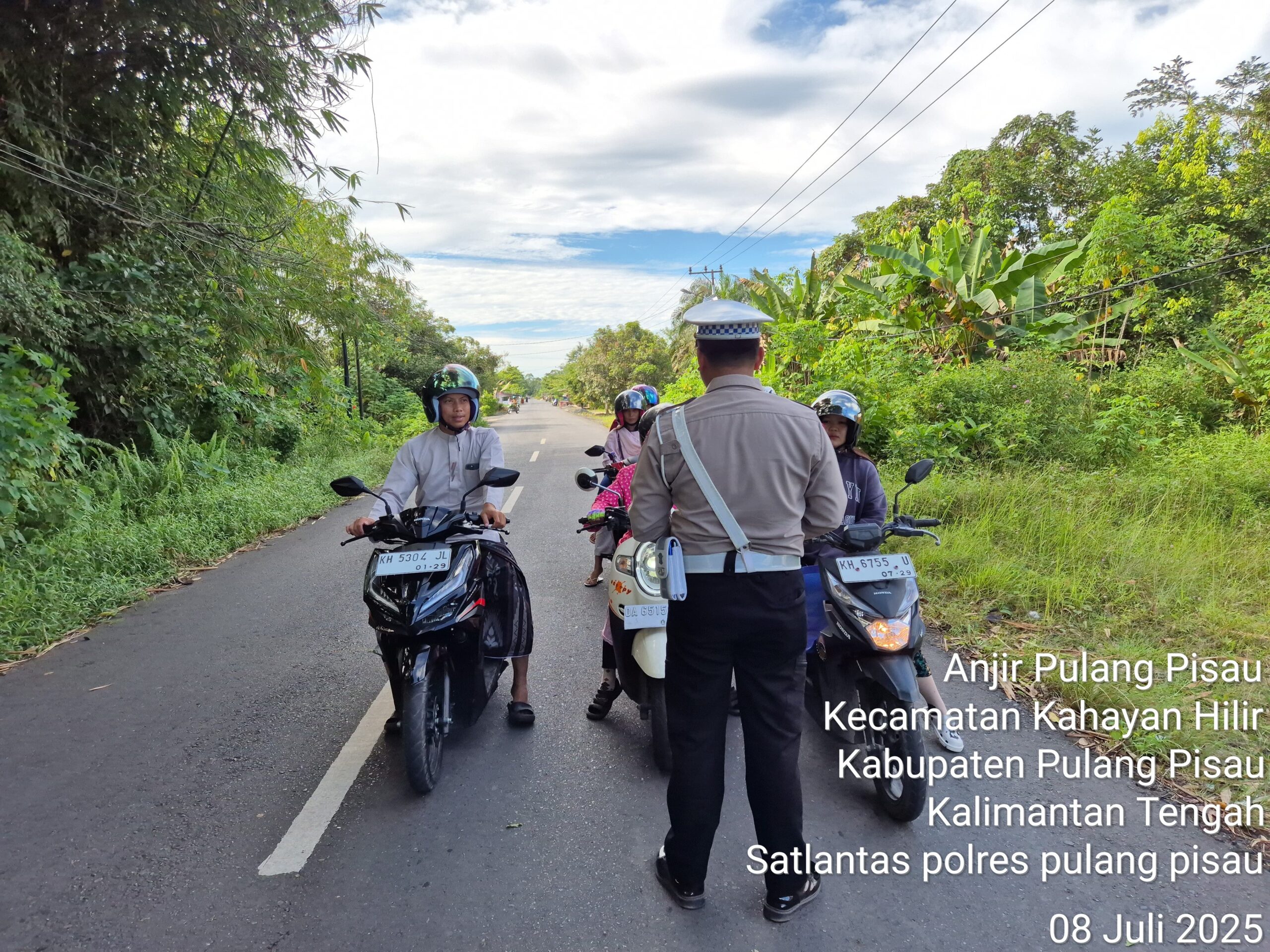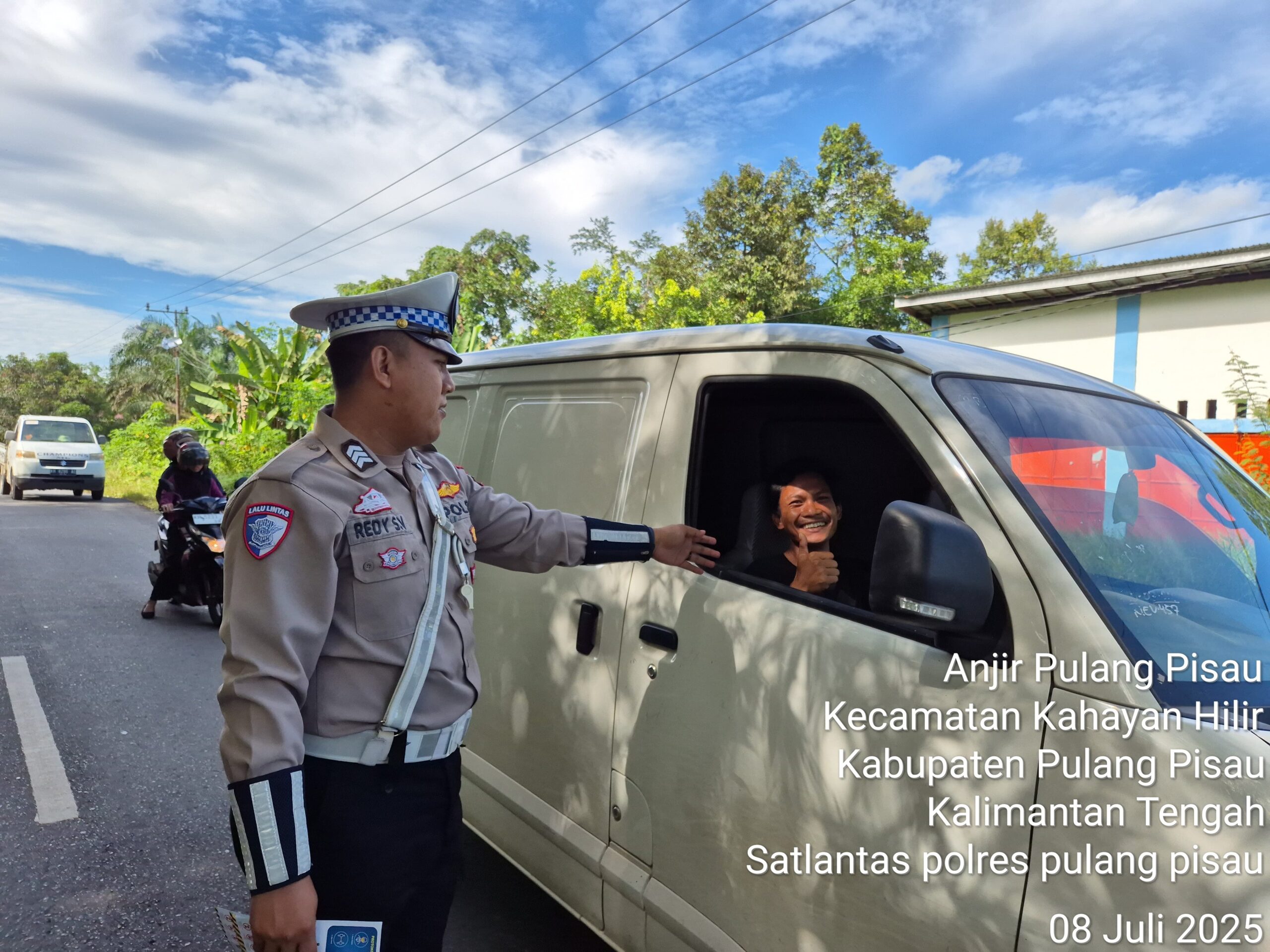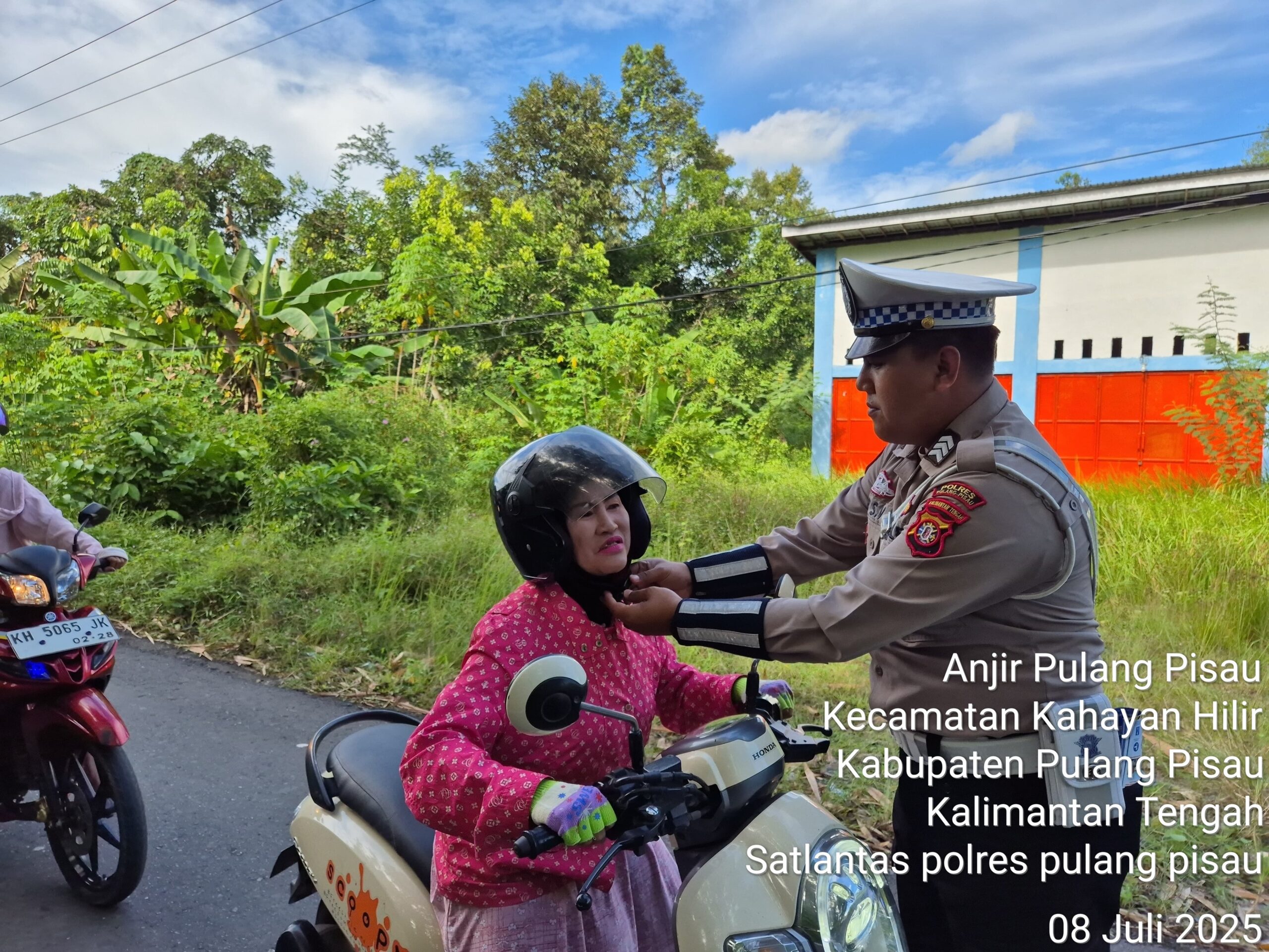 Polres Pulang Pisau – Satuan Lalu Lintas – Dengan Senyuman yang ramah Personel Satlantas Polres Pulang Pisau mengingatkan pengendara roda dua agar selalu klik helm saat berkendara. Selasa (8/7/2025). Imbauan itu disampaikan demi mewujudkan keamanan, keselamatan, ketertiban dan kelancaran lalu lintas (Kamseltibcarlantas). Kapolres Pulang Pisau AKBP Iqbal Sengaji,S.I.K., M.Si melalui Kasatlantas Iptu Divani Mareta Astuti, S.Tr.K mengatakan pengendara yang tidak meng-klik helm diberikan teguran oleh personel Satlantas. “Sosialisasi dan edukasi ini sebagai upaya untuk mengedukasi pengguna jalan agar mematuhi aturan berlalu lintas,” kata Kasat