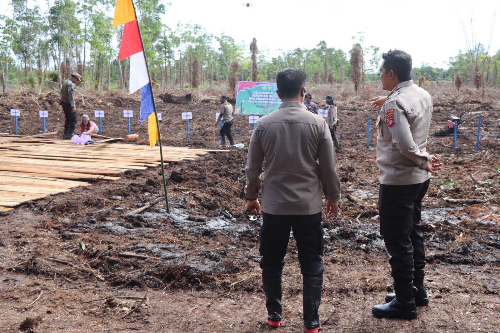 Pulang Pisau — Menyambut pelaksanaan program Ketahanan Pangan Nasional Tahun 2025 yang akan digelar secara serentak di seluruh Indonesia, Kapolres Pulang Pisau AKBP Iqbal Sengaji, S.I.K., M.Si. bersama Karo SDM Polda Kalimantan Tengah melakukan peninjauan kesiapan lahan di Sungai Buluh 1, Kelurahan Kelawa Kahlir, Kabupaten Pulang Pisau. Selasa (08/07/2025).