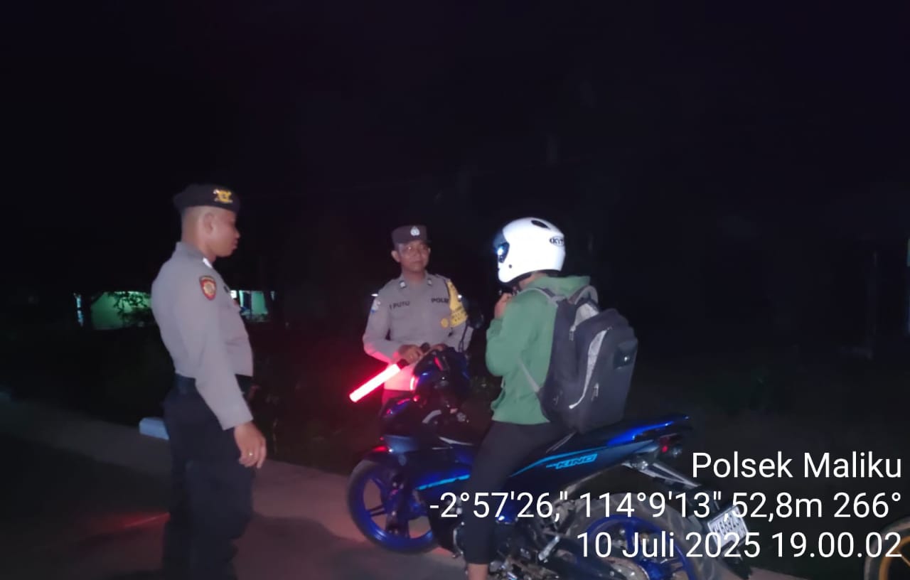 Polres Pulang Pisau – Polsek Maliku, Polres Pulang Pisau, Polda Kalteng, mencegah terjadinya potensi gangguan kamtibmas dengan melaksanakan Kegiatan patroli malam yang dilaksanakan secara mobile dalam rangka Harkamtibmas di wilayah Hukum Polsek Maliku, Kamis (10/07/2025) Malam