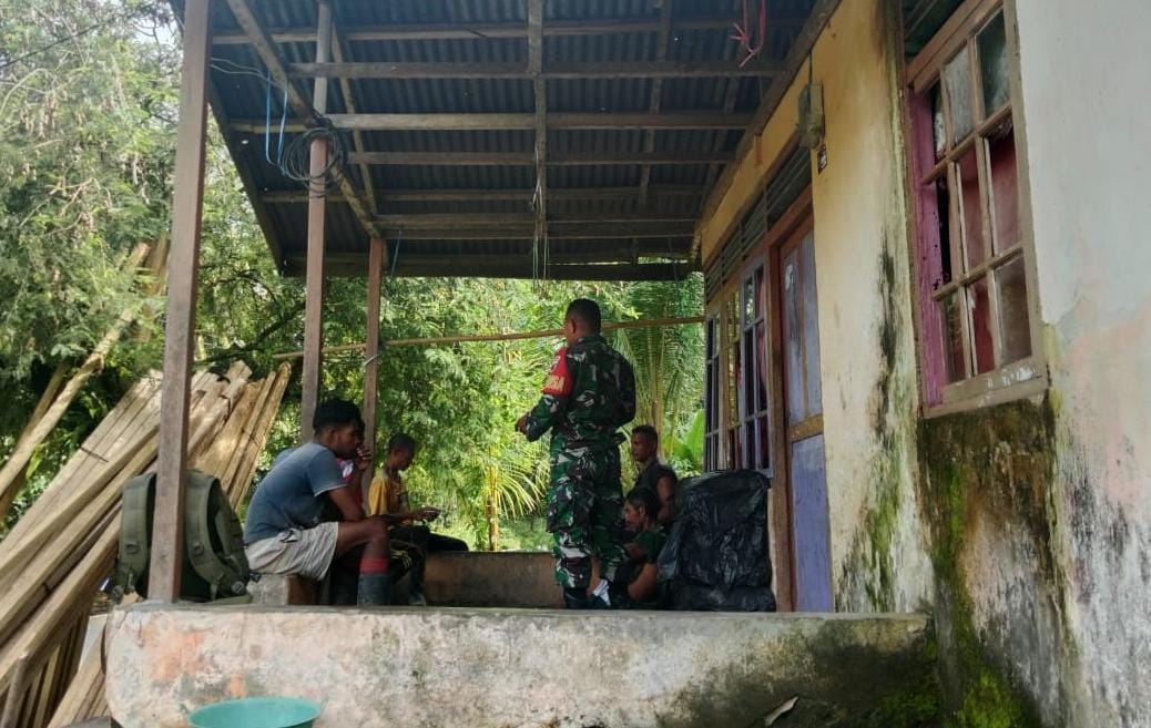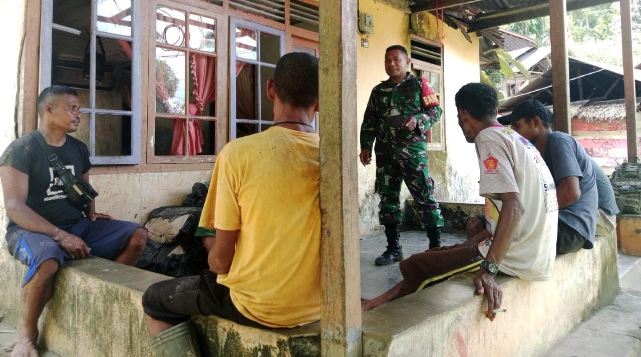 SBB PW 12 Juli 2025 — Babinsa Dusun Pohon Batu, Desa Sanahu, Kecamatan Elpaputih, Kabupaten Seram Bagian Barat, Sertu Mezak Apituley dari Koramil 1513-03/Kairatu melaksanakan kegiatan komunikasi sosial (komsos) bersama warga binaan.