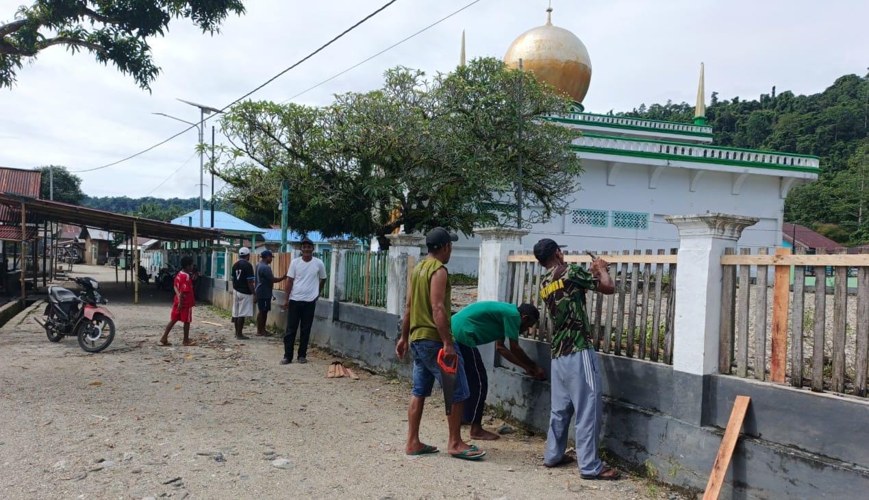 SBB PW Sabtu 12 Juli 2025 – Dalam semangat gotong royong dan kebersamaan, Babinsa Koramil 1513-02/Taniwel untuk Desa Lisabata, Serda Wahid Abd. Rahman bersama masyarakat melaksanakan kegiatan kerja bakti memperbaiki pagar Masjid Al-Mukmin yang terletak di pusat desa.