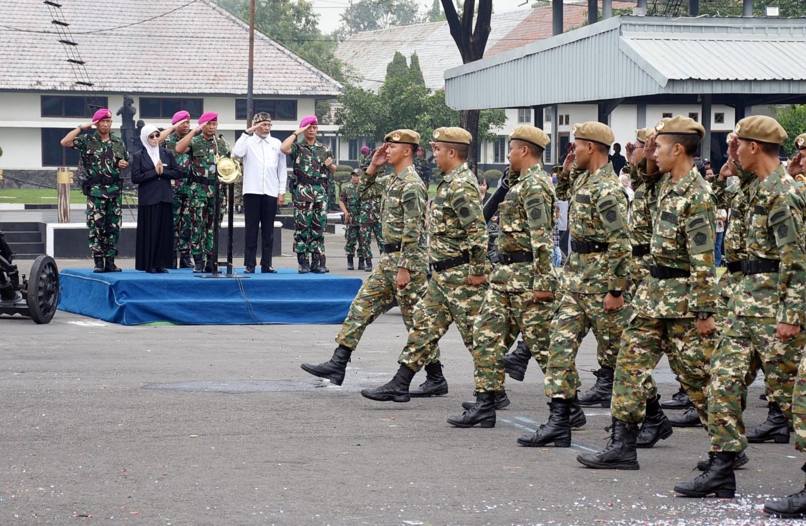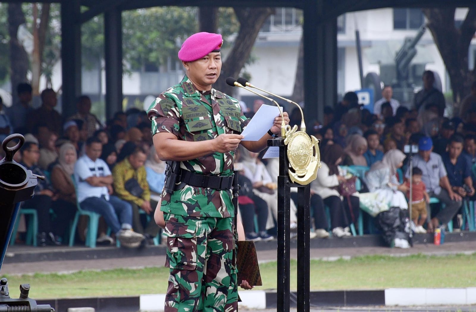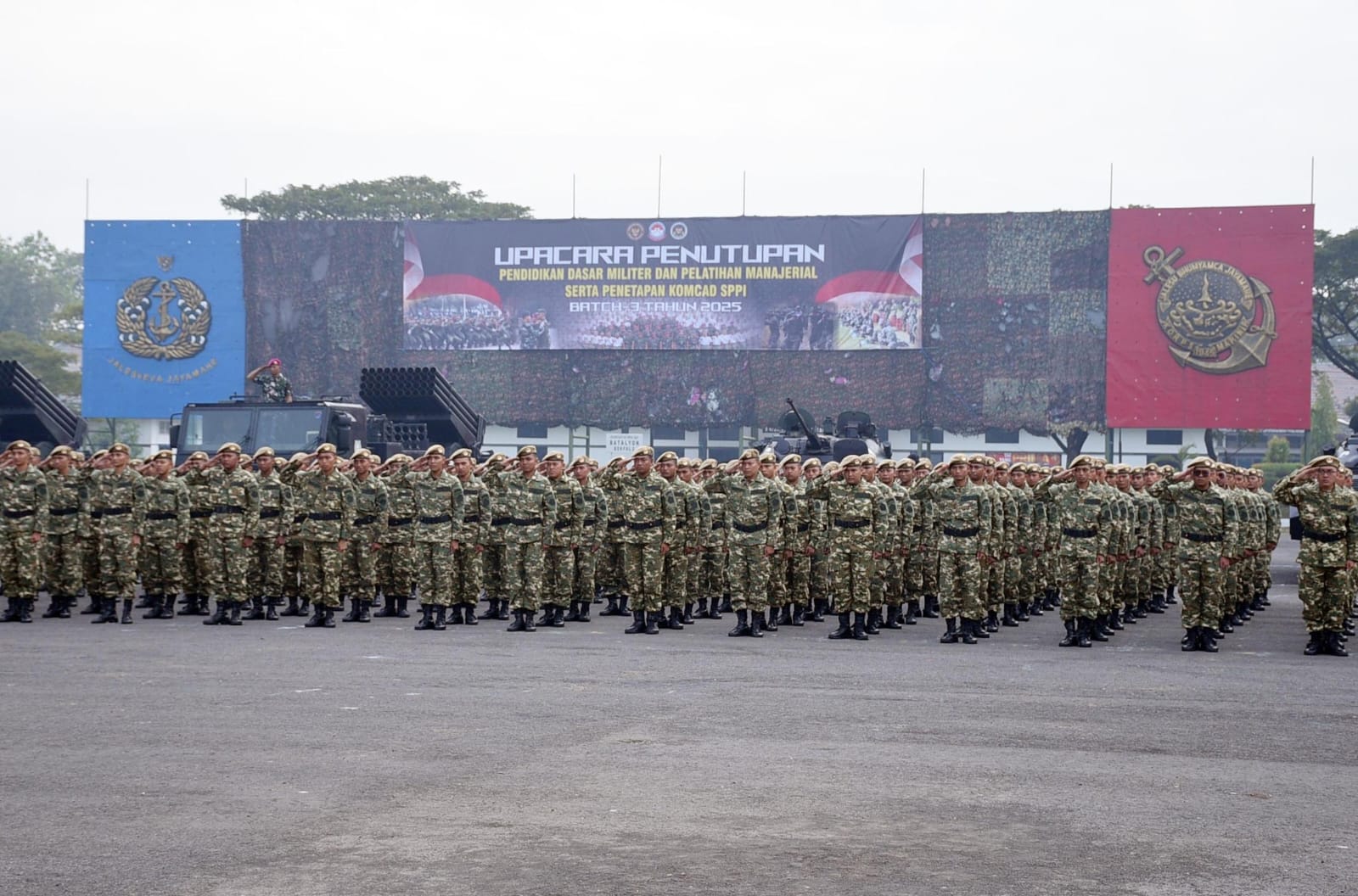 Dispen Kormar, TNI AL (Surabaya) PW : Wadan Pasmar 2 Kolonel Marinir Arief R.H. Anggorojati, S.E., CTMP., M.M., memimpin Upacara Penutupan Pendidikan Dasar Militer (Diksarmil) dan Pelatihan Manajerial serta Penetapan Komponen Cadangan (Komcad) Sarjana Penggerak Pembangunan Indonesia (SPPI) Batch 3 Satdik 2 Menart 2 Marinir Kolat IX Tahun 2025 di Lapangan Kesatrian Marinir Sutedi Senaputra, Karangpilang, Surabaya. Sabtu (12/07/2025).