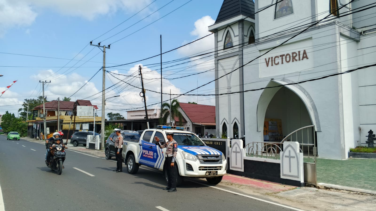 Polres Pulang Pisau – Satuan Lalu Lintas – Dalam rangka pengamanan ibadah Gereja Hari Minggu, personel Satlantas Polres Pulang Pisau menggelar kegiatan Pam Jalur Lalu Lintas di sejumlah gereja, Minggu (13/7/2025) pagi. Pukul 09.00 WIB Kapolres Pulang Pisau AKBP Iqbal Sengaji, S.I.K,. M.Si melalui Kasatlantas Iptu Divani Mareta Astuti, S.Tr.K mengatakan “Kegiatan Pengamanan Jalur Lalu Lintas dilaksanakan secara mobile dan stasioner di sejumlah gereja yang sedang melaksanakan ibadah,” ujar Iptu Divani Mareta Astuti, S.Tr.K. Kami melakukan pengaturan, dan mobilisasi kendaraan di sekitar tempat ibadah. Tujuannya menciptakan situasi yang aman…