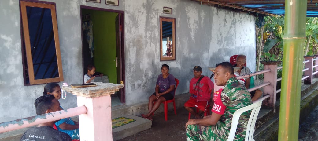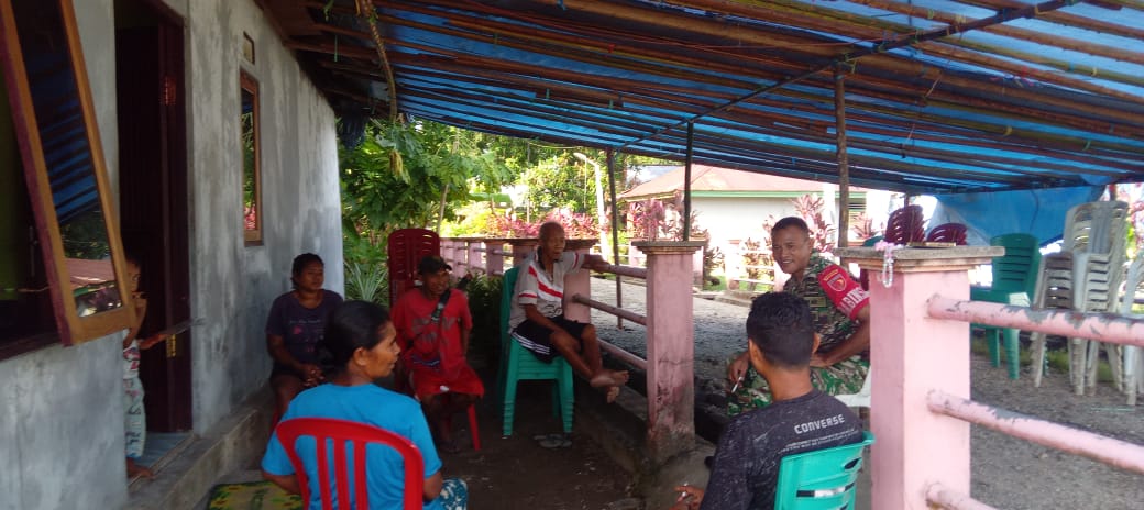 Babinsa Koramil 1513-02/Taniwel, Sertu Karel Hatuopar, melaksanakan kegiatan komunikasi sosial (komsos) di Dusun Saweli, Kecamatan Taniwel, Kabupaten Seram Bagian Barat.