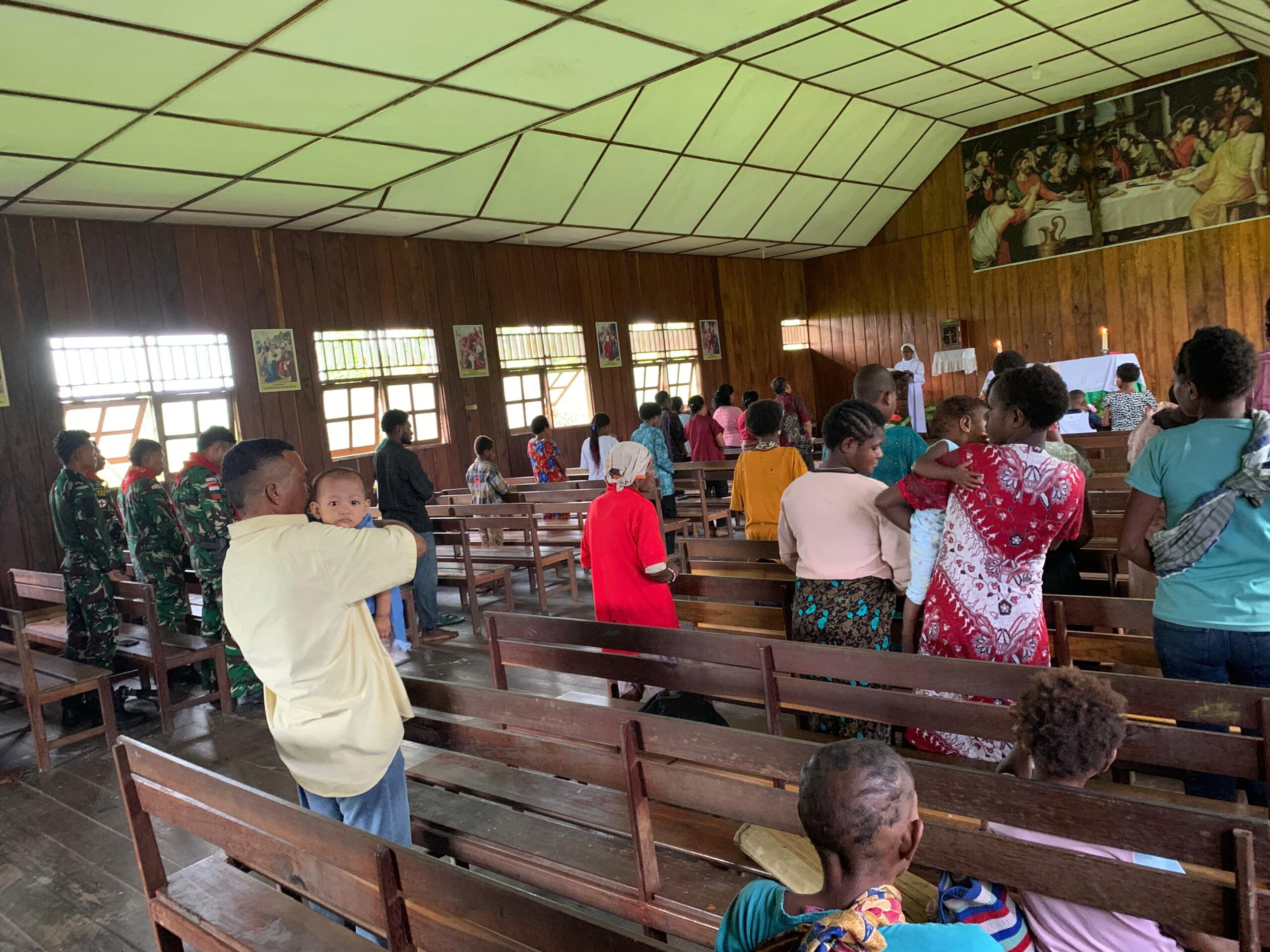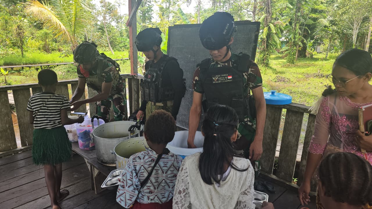 Warga Kampung Mumugu menyambut kegiatan ini dengan antusias dan rasa syukur yang mendalam. Mereka mengapresiasi kehadiran TNI yang tak hanya mengayomi secara fisik, tetapi juga memberikan keteduhan rohani.