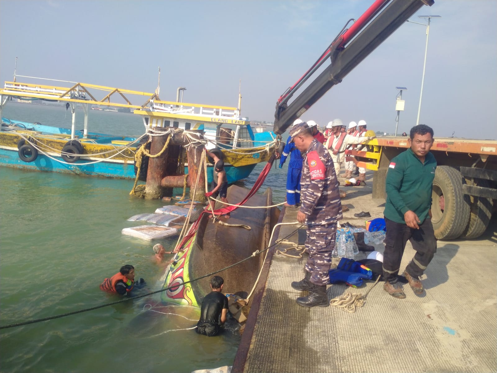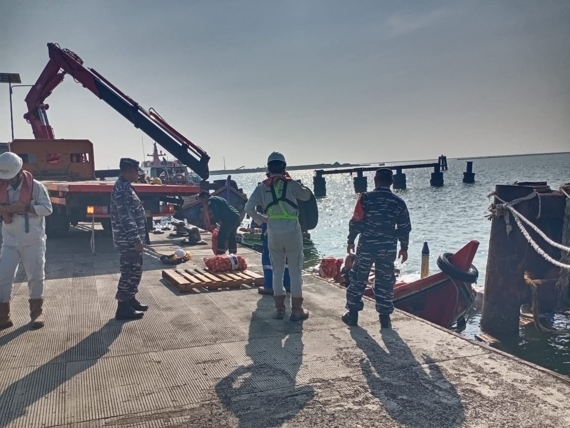 TNI AL Dan Tim Sar Gabungan Evakuasi Laka Laut KM.Sinozi Di Pelabuhan Patimban Subang