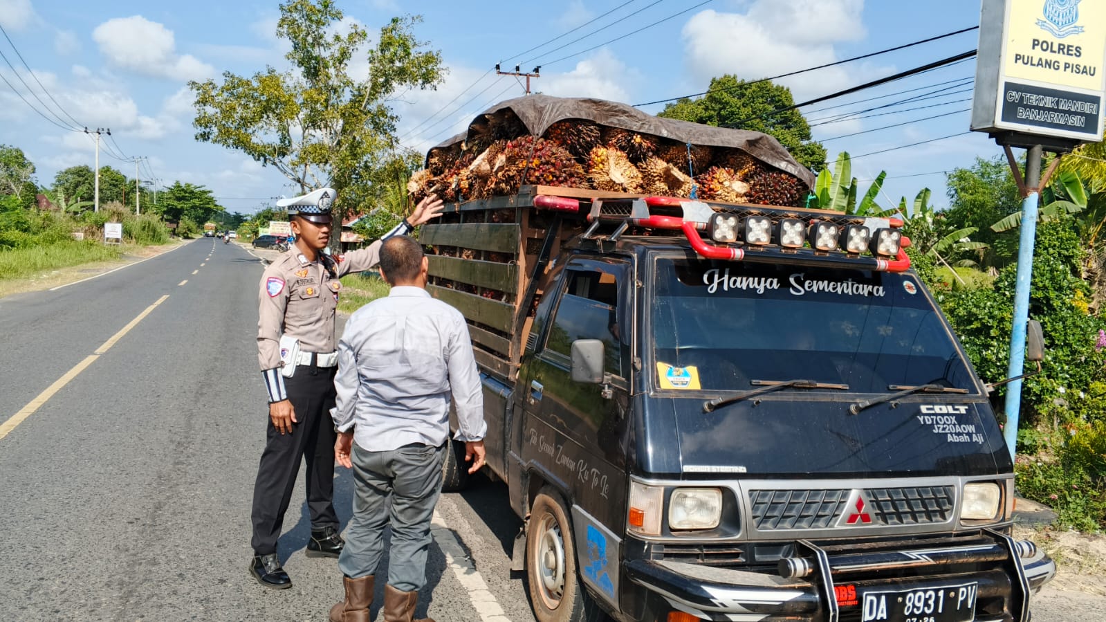 Selama beberapa hari terakhir, petugas satlantas gencar melakukan teguran secara humanis kepada para pengemudi truk yang kedapatan melanggar aturan kapasitas muatan di Jalan Lintas Trans Kalimantan, Kabupaten Pulang Pisau, Minggu (13/7/2025). Langkah ini diambil sebagai bentuk komitmen untuk memastikan keselamatan seluruh pengguna jalan.