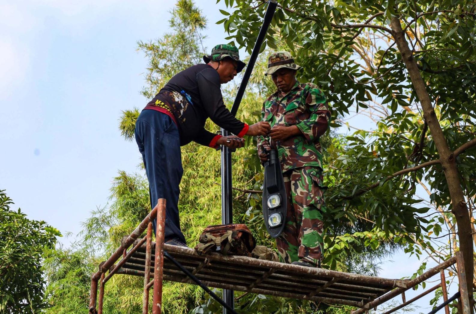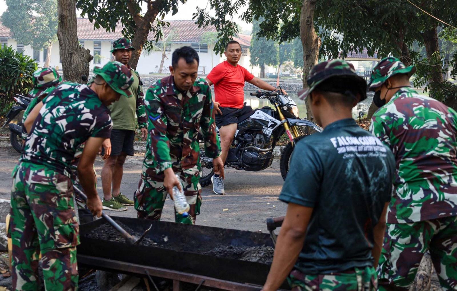 TNI AL, Dispen Kormar (Sidoarjo) PW : Dalam rangka menciptakan kenyamanan, prajurit Batalyon Infanteri 3 Marinir melaksanakan pemasangan lampu penerang jalan serta melakukan perbaikan jalan di Kesatrian Marinir R. Suhadi Gedangan, Sidoarjo, Jawa Timur. Senin (14/07/2025).