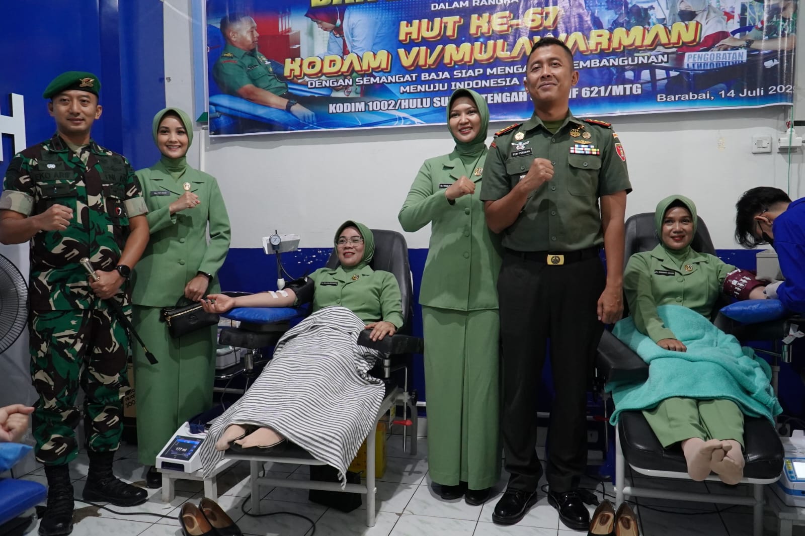 Barabai–PW:Dalam rangka memperingati Hari Ulang Tahun (HUT) ke-67 Kodam VI/Mulawarman, Kodim 1002/Hulu Sungai Tengah (HST) bekerja sama dengan Yonif 621/Mtg, Unit Transfusi Darah Rumah Sakit Damanhuri Barabai, dan Palang Merah Indonesia (PMI) Kabupaten Hulu Sungai Tengah menggelar kegiatan bakti sosial donor darah.