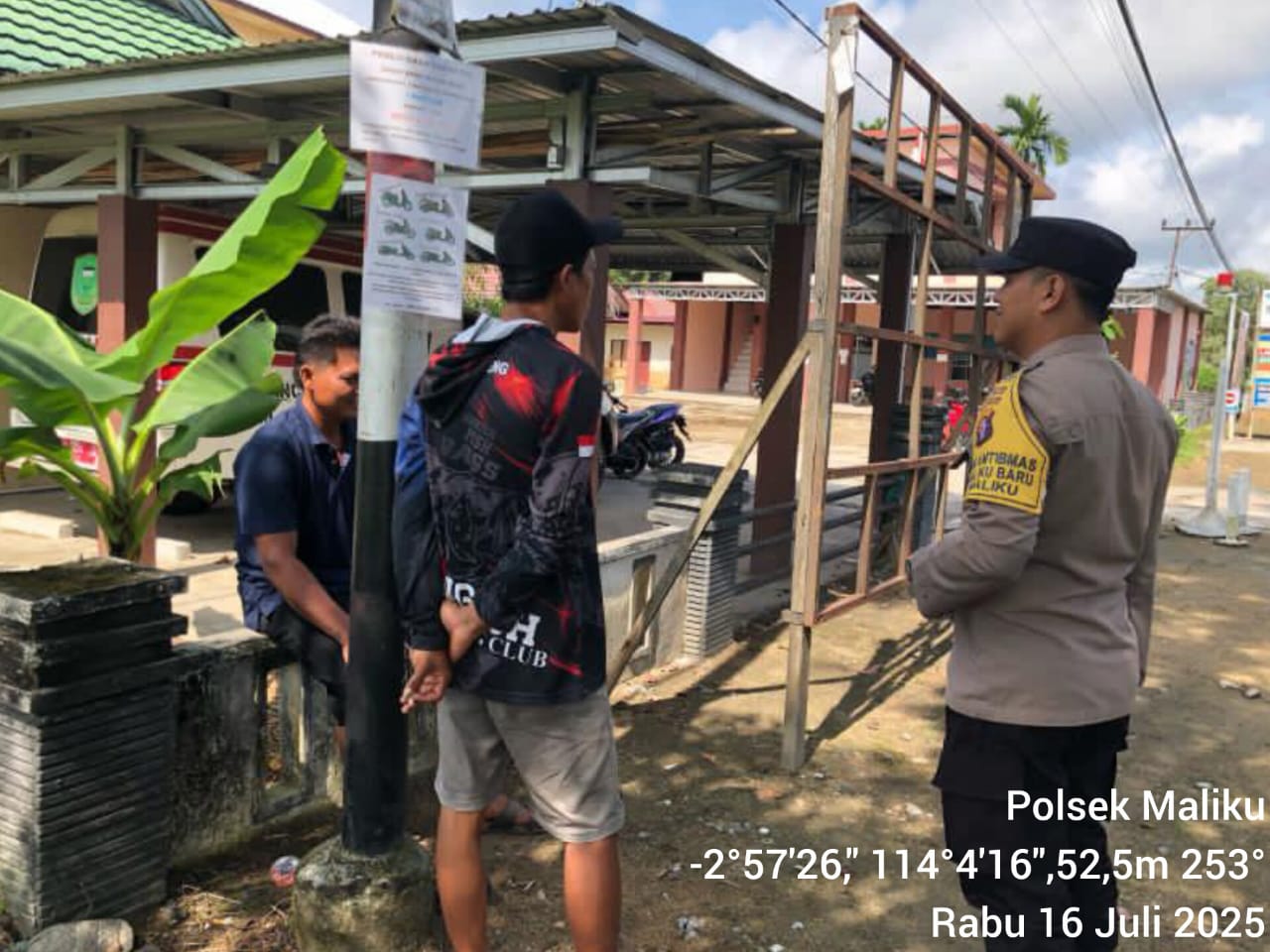 Polres Pulang Pisau – melaksanakan kegiatan sambang kamtibmas di desa binaannya, Personel Bhabinkamtibmas desa Maliku Baru Polsek Maliku, Polres Pulang Pisau, Polda Kalteng, Brigpol M. Iqbal menyampaikan himbauan kamtibmas kepada warga masyarakat dalam rangka memelihara kamtibmas tetap Kondusif, Rabu (16/07/2025) pagi.