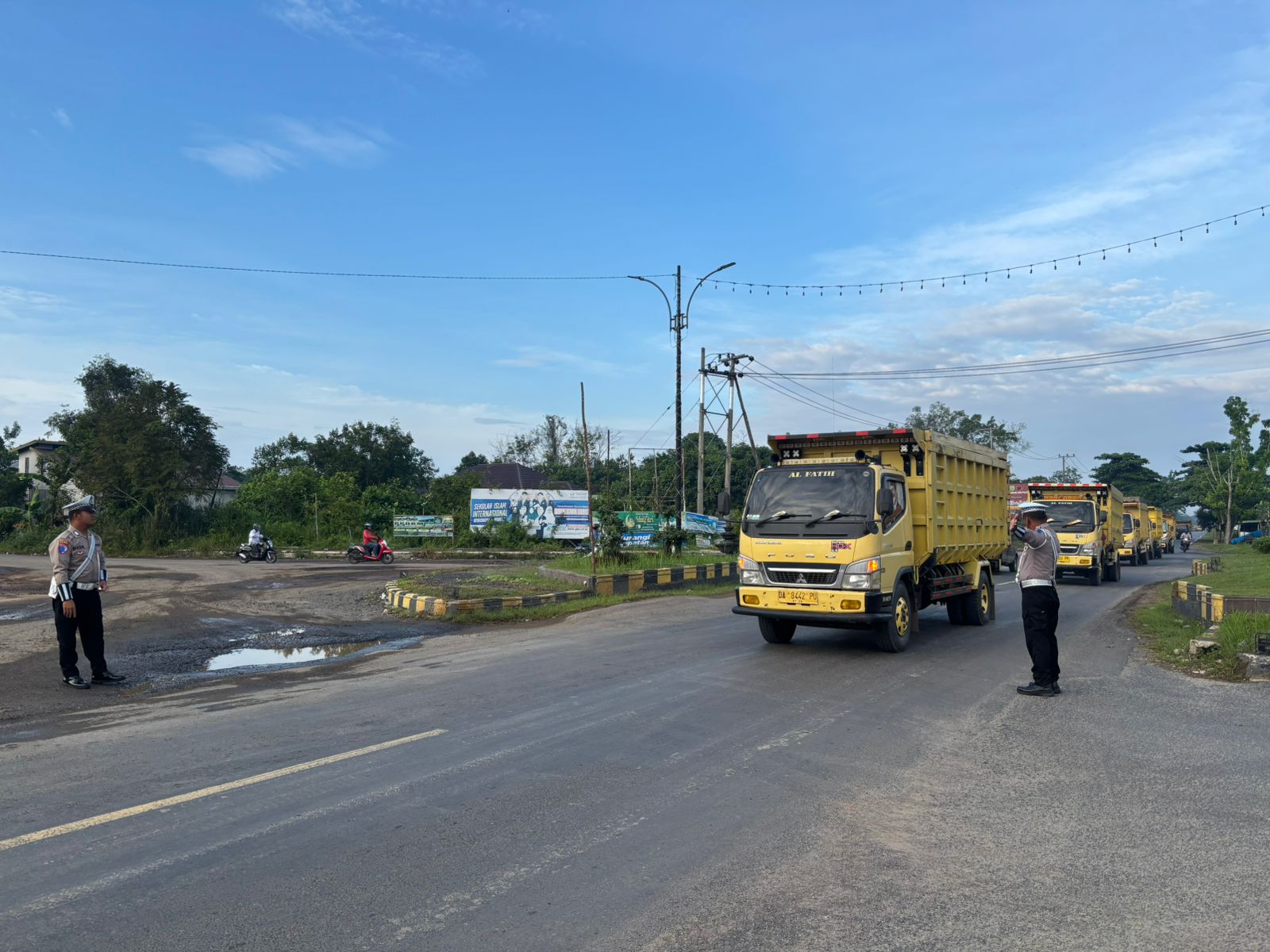 Dengan sigap dan penuh kepedulian, petugas membantu memastikan keamanan para pengguna jalan, khususnya anak-anak sekolah yang berangkat di jam sibuk pagi hari. Kegiatan ini merupakan bagian dari rutinitas pengaturan lalu lintas guna menciptakan keamanan, ketertiban, dan kelancaran di jalan raya.